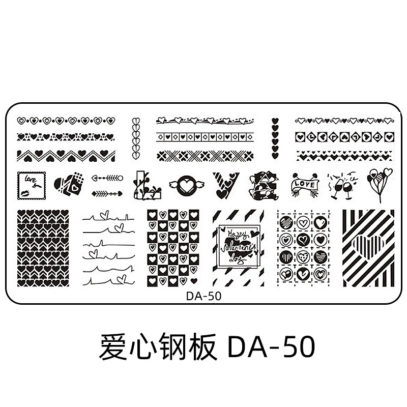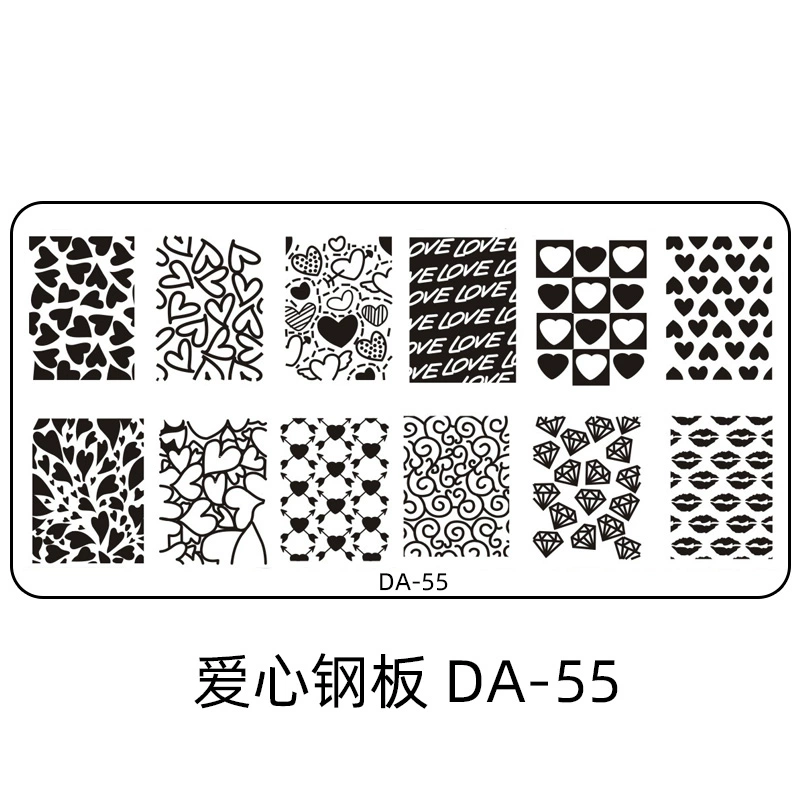 Steel plate template peach heart-shaped striped checkerboard manicure