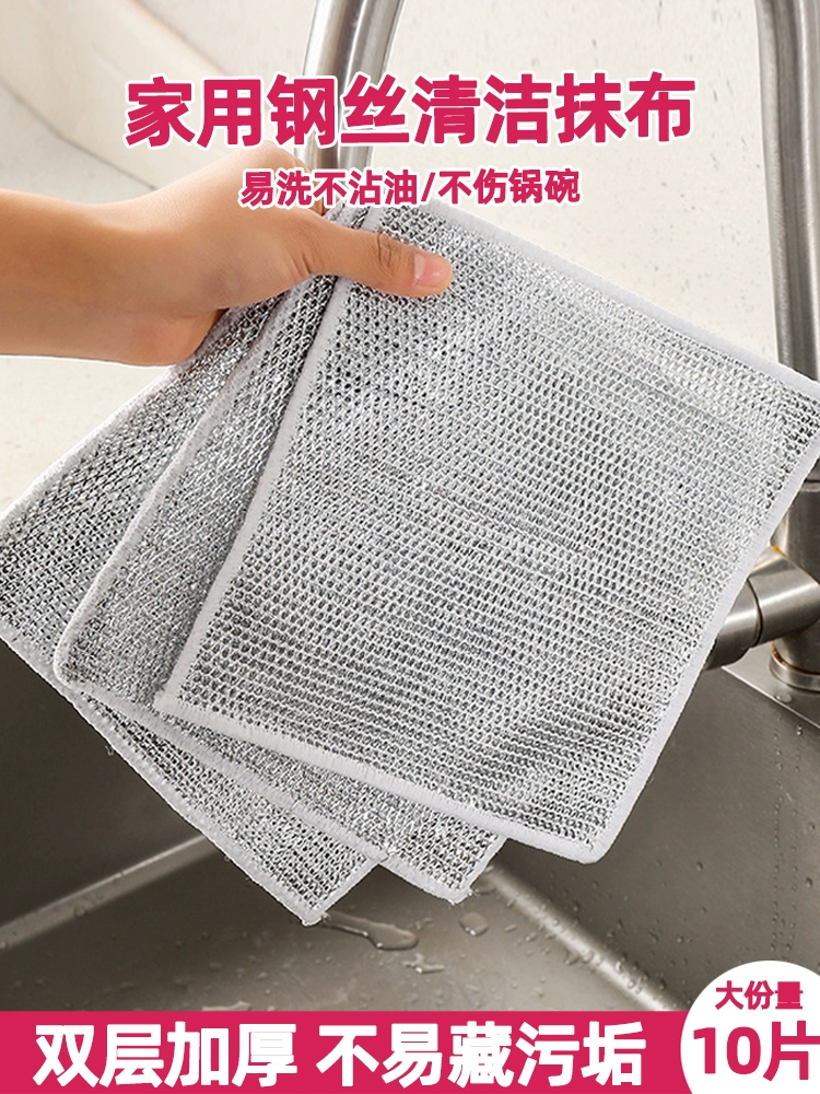 Steel wire rag double-sided silver wire dishwashing cloth non-stick kitchen special easy to clean strong scouring pad household brush pot
