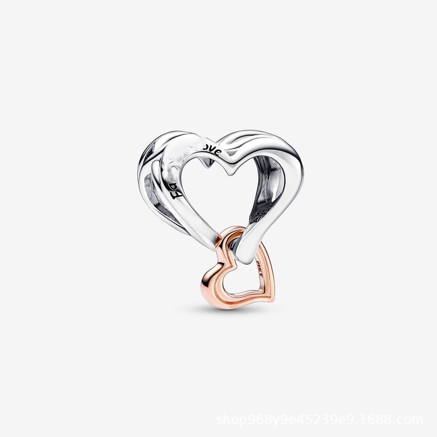 Sterling Silver Bracelet Pendant Two-Tone Hollow Heart-Shaped Unlimited Symbol String