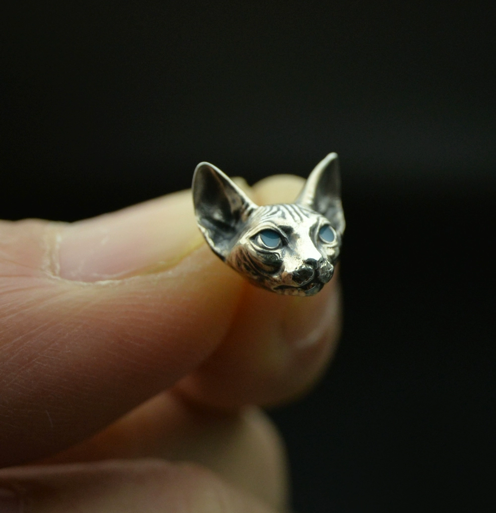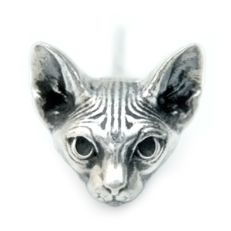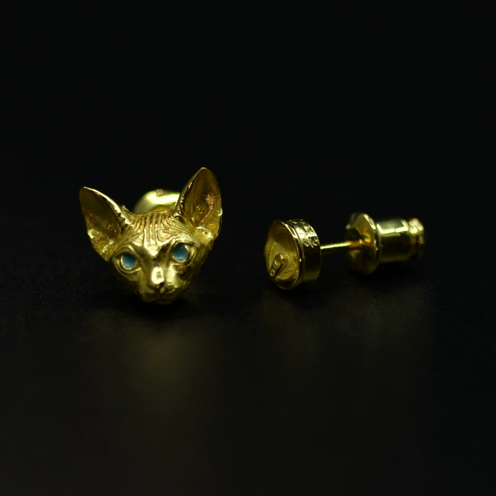 Sterling Silver Cat Earrings Sphynx Cat Canned Cat [The Taste of Saury] Creative Gift Tingxue