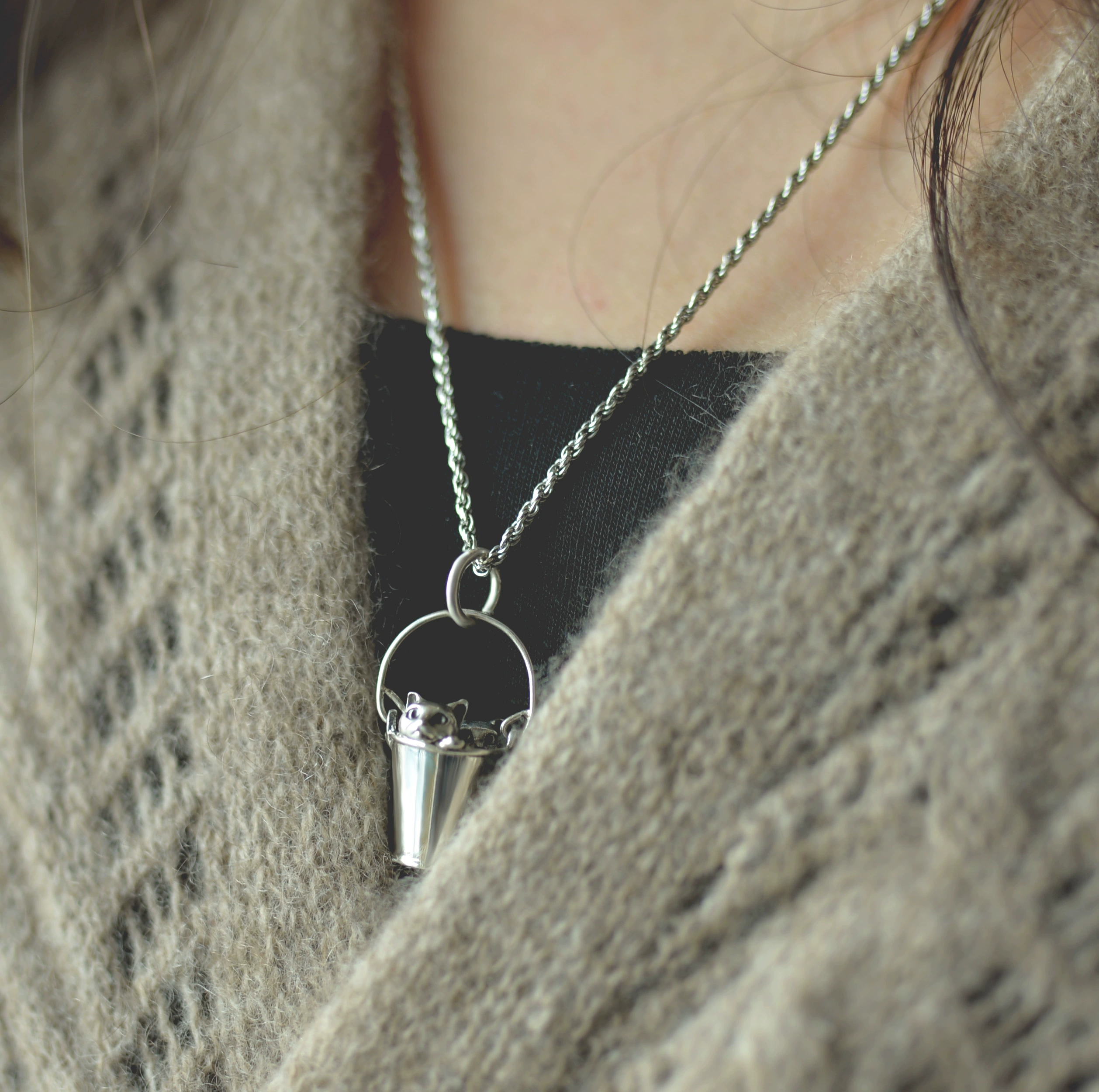Sterling Silver Cat Pendant Meow Star [Bucket of Cats] Creative Gift Original by Tingxue Studio