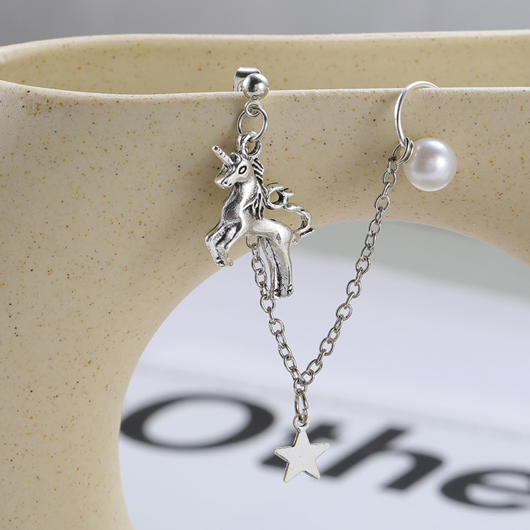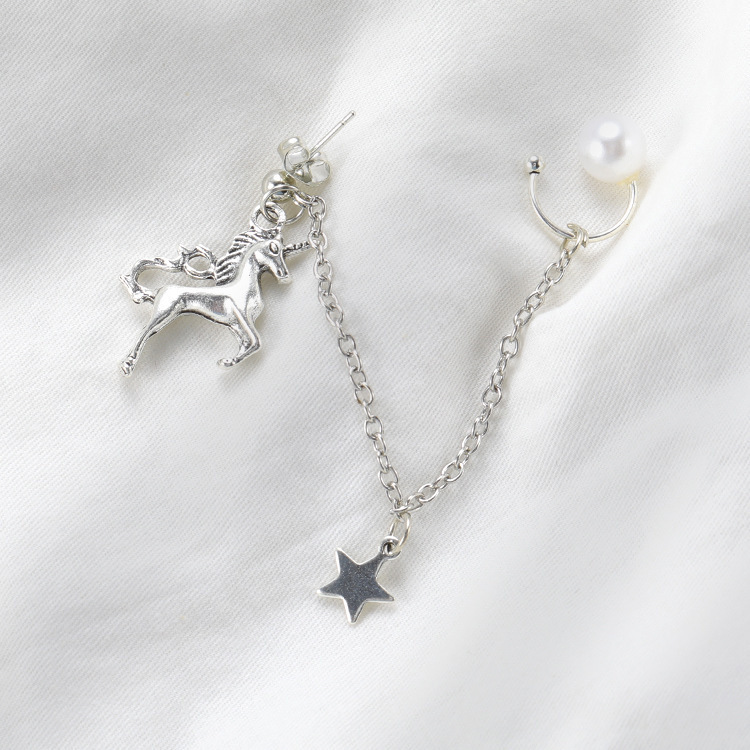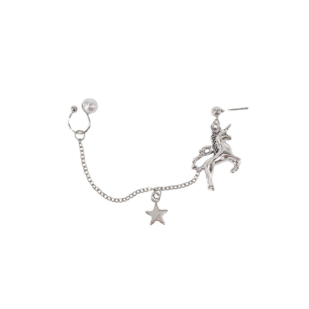 | nameOriginal | Sterling Silver Chain Star Trojan Horse Earrings Girl's Tassel Soft Girl IN Girl's Heart Ear Line Long Super Fairy Ear Clip Earrings |