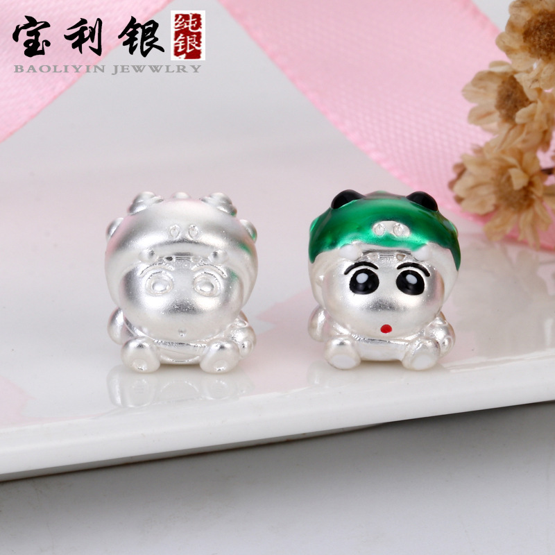 Sterling silver crayon Xiaoxin diy accessories pure silver 999 handmade braided rope dinosaur clothing Xiaoxin beaded jewelry