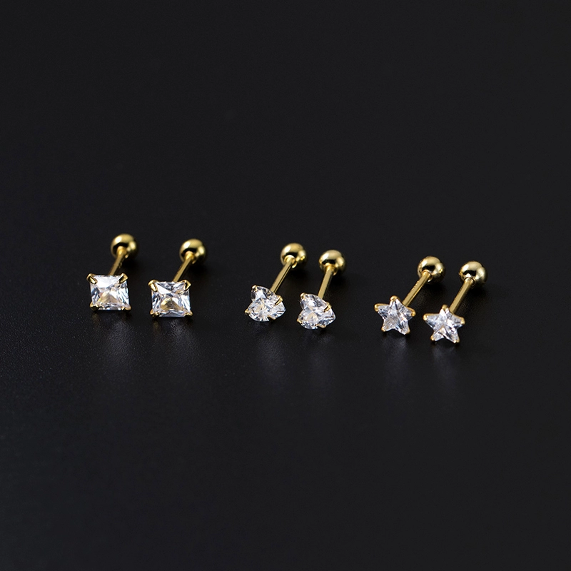 | nameOriginal | Sterling silver diamond heart square geometric five-pointed star stud earrings |