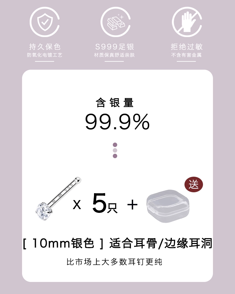 Sterling silver diamond sleep-free anti-clogging women's earrings