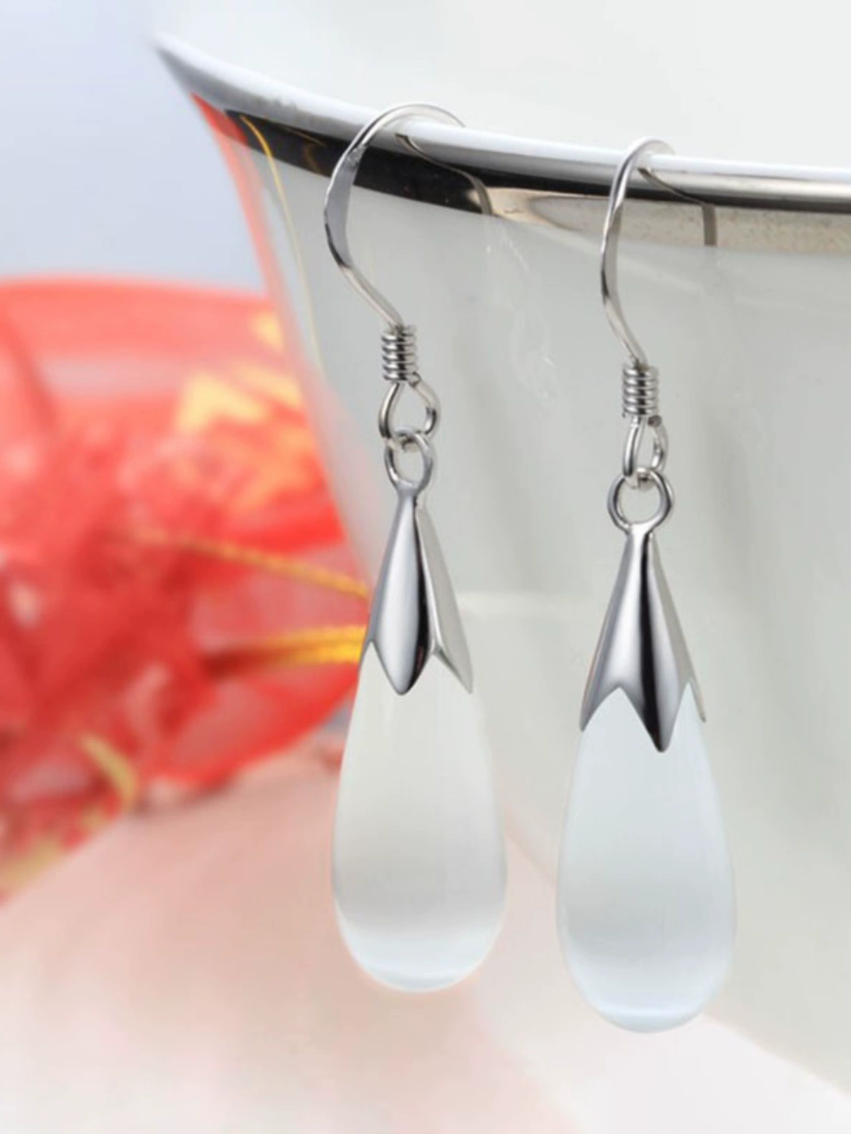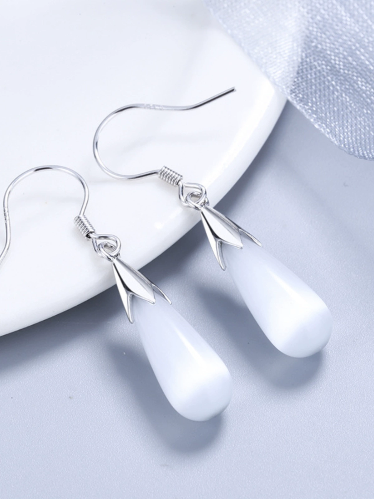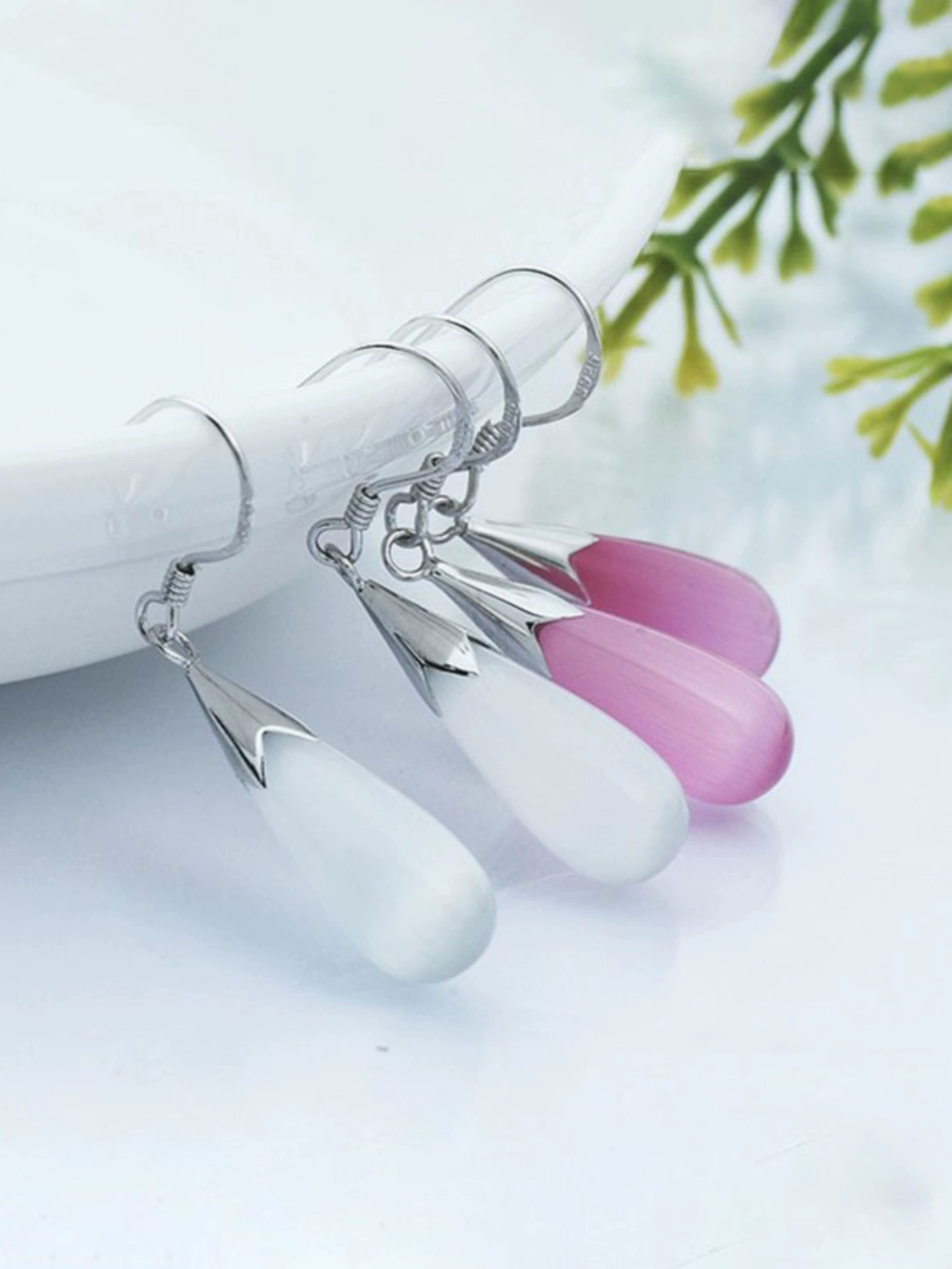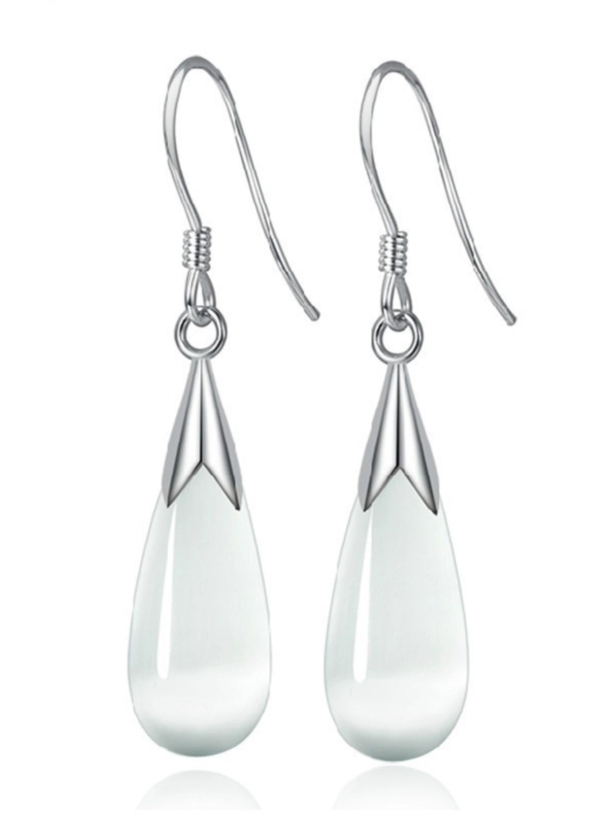 | nameOriginal | Sterling silver drop earrings long cat's eye earrings Japanese and Korean fashion retro earrings hypoallergenic earrings simple beads |
