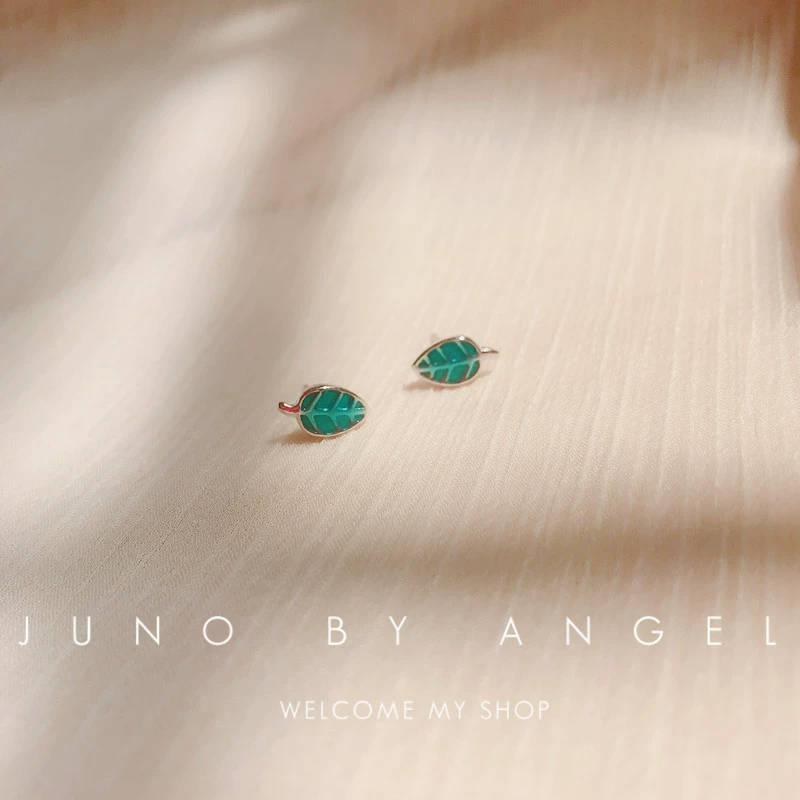 Sterling silver drop glaze colorful cute tree leaf student earrings