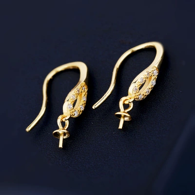 Sterling silver earrings empty support 925 sterling silver earrings earrings gold inlaid beeswax pearl ball beads needle earrings support