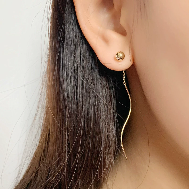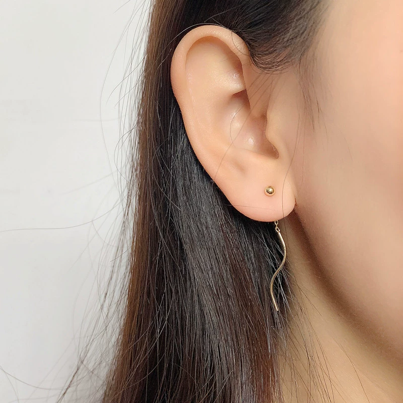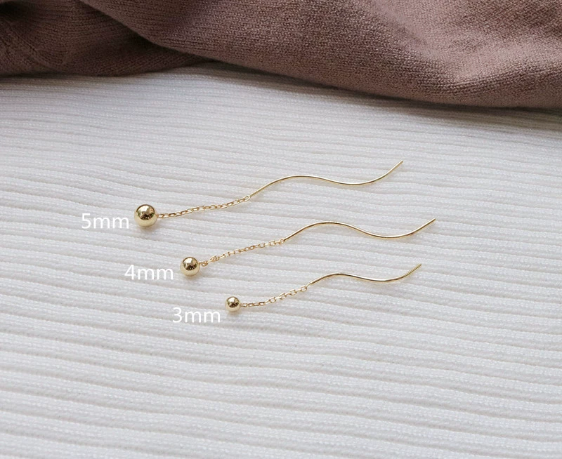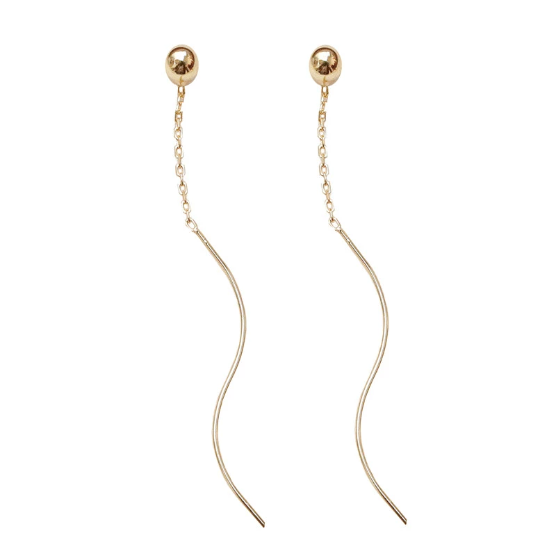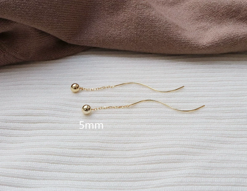 Sterling silver gold beads, large gold bean earrings, large round bead earrings, small fresh wave earrings, super fairy exquisite tassel earrings
