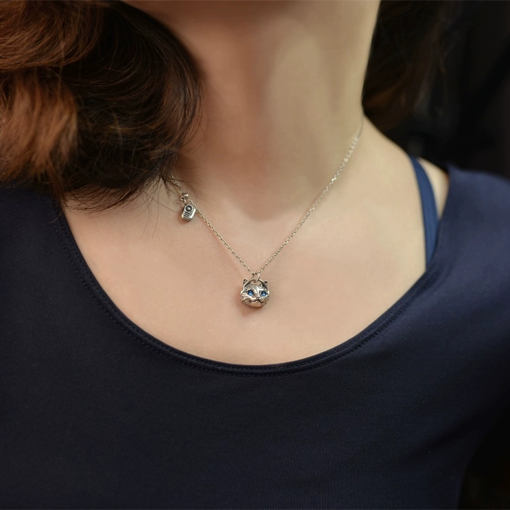 | nameOriginal | Sterling silver ragdoll cat necklace pendant inlaid with gemstones, cute creative gift for couples, personalized silver jewelry, exquisite |