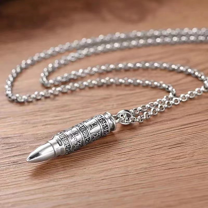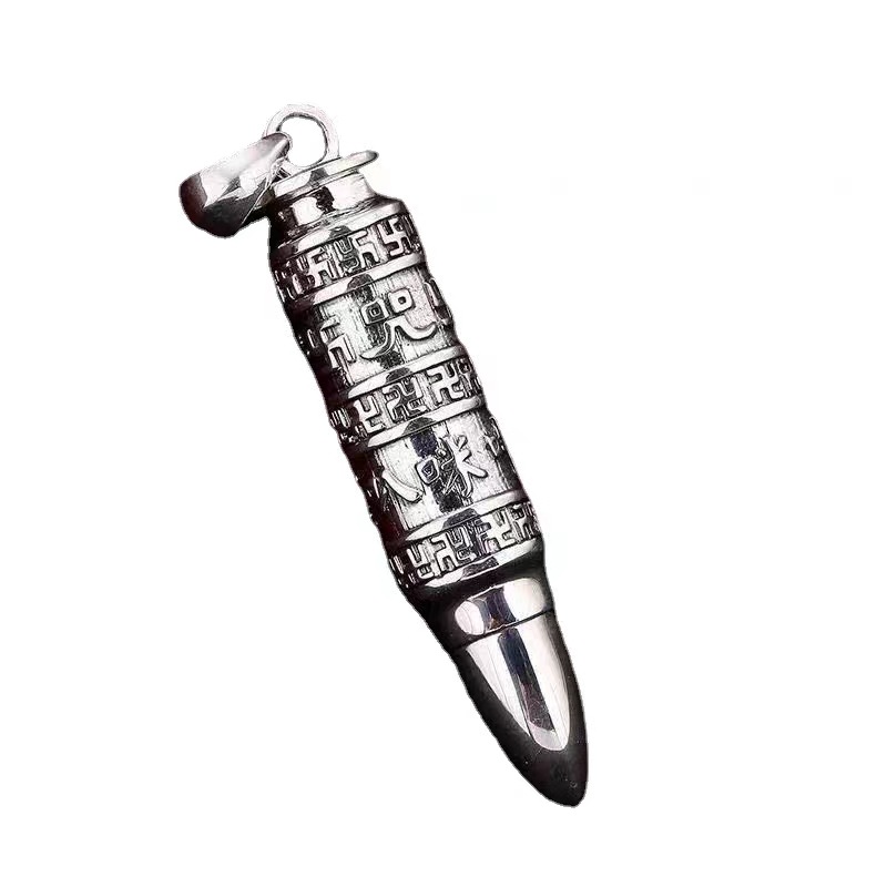 Sterling silver six-word mantra fashion Chian mantra bullet pendant gawu box men’s and women’s pendant necklace Hollow