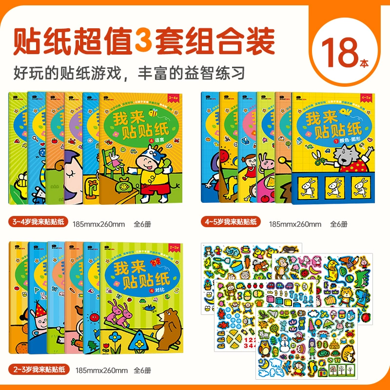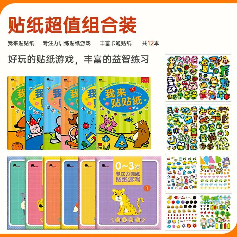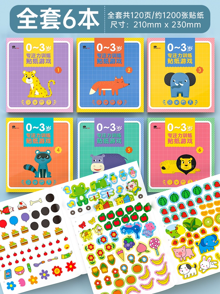 Sticker book for girls 3 to 6 years old children's educational stickers 4 concentration training 2 kindergarten baby cognitive toys