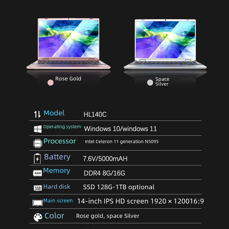| nameOriginal | Stico 14 inch rose gold laptop N5095 thin portable laptop factory wholesale |