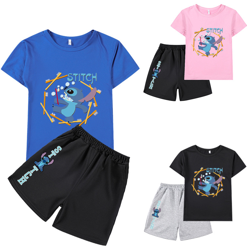 | nameOriginal | Stitch Stitch Perimeter Print Cross-border Amazon Hot Selling Boys and Girls Short-sleeved T-shirt Shorts suit 642 |
