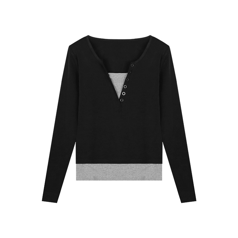 | nameOriginal | Stitched contrasting color long-sleeved slim and chic niche fake two-piece |