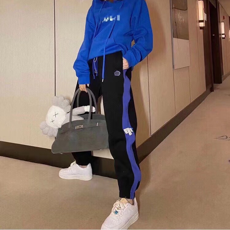 | nameOriginal | Stitching closed sweatpants contrast color blue stripe men and women couple sports trousers spring versatile fashion brand stretch Korean style pants |