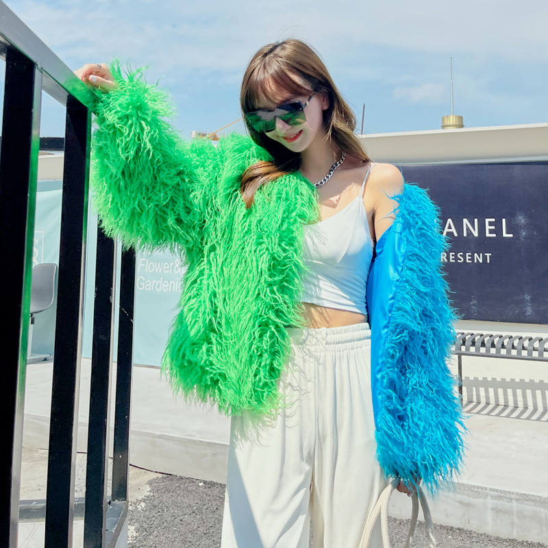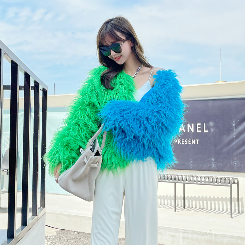 | nameOriginal | Stitching Contrast Color Imitation Wool Imitation Fur Coat European and American Beach Wool Women's Short Coat Lamb Wool Cardigan |