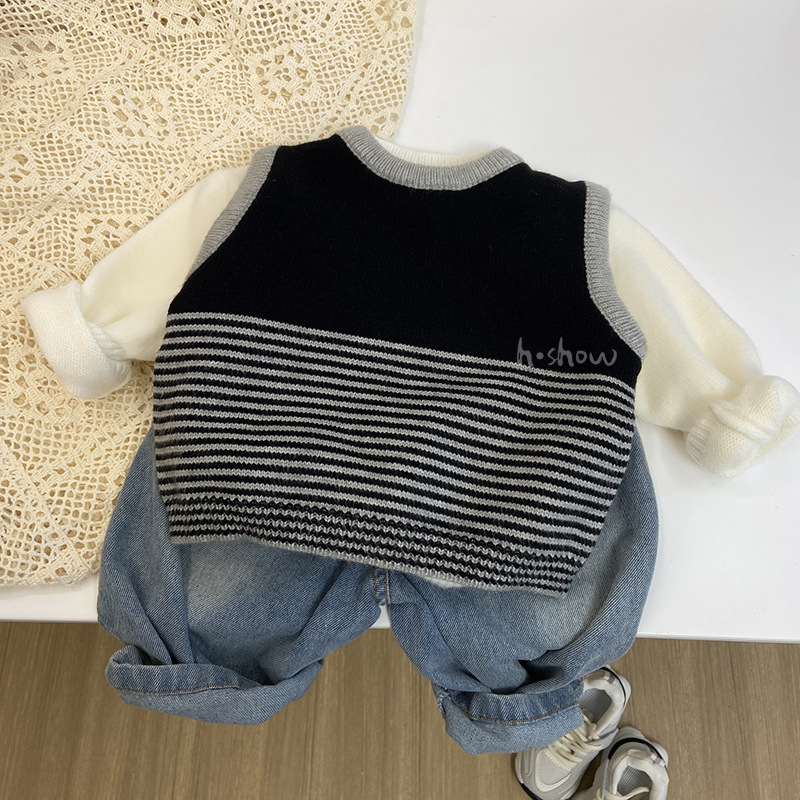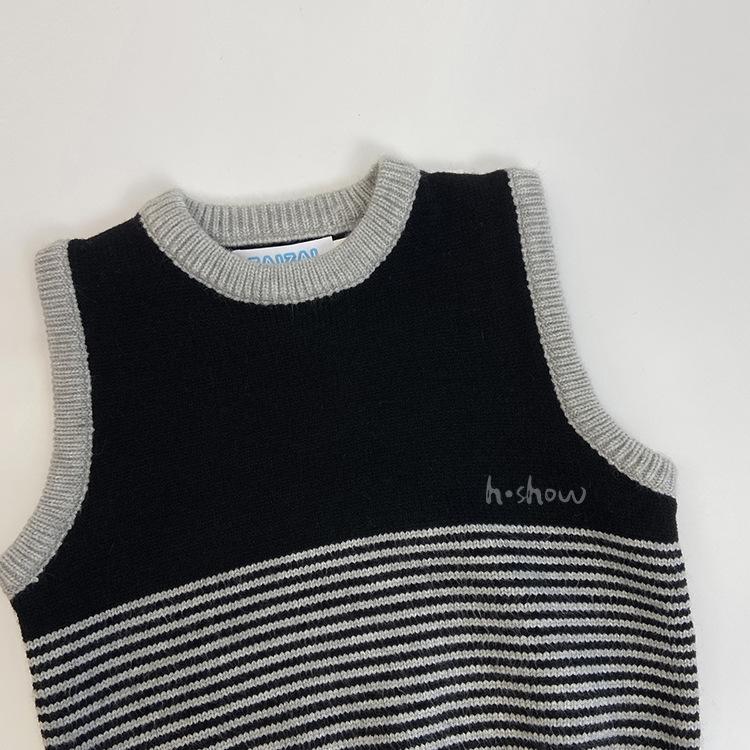 | nameOriginal | Stitching striped boys and girls all-match waistcoat knitted sweater children's loose Western style pullover vest 0138A001 |