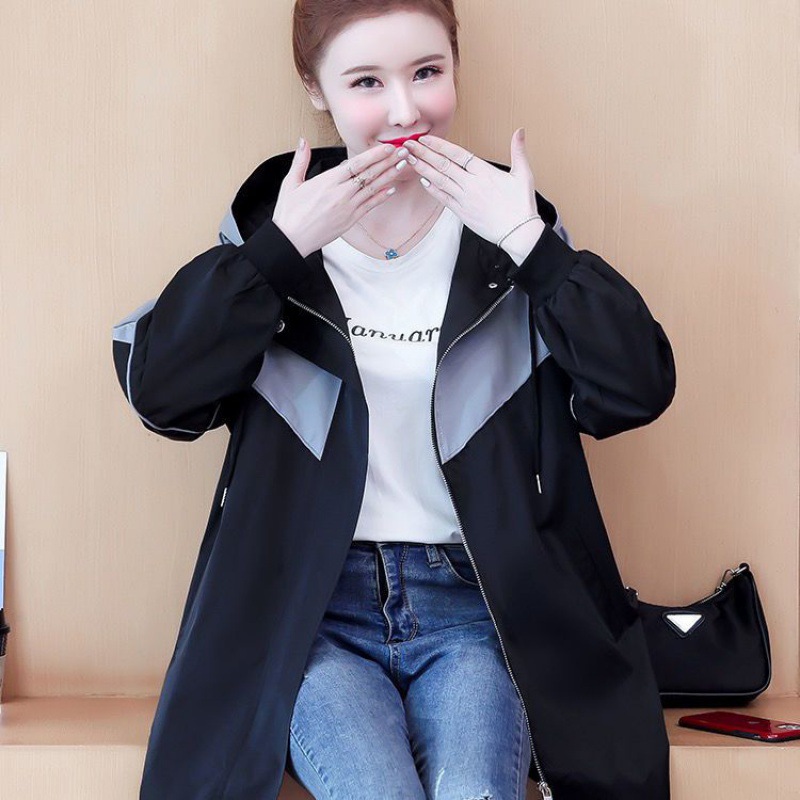 | nameOriginal | Stitching windbreaker Women's Mid-length 2023 Spring and Autumn New Korean style slimming temperament age-reducing hooded loose coat |