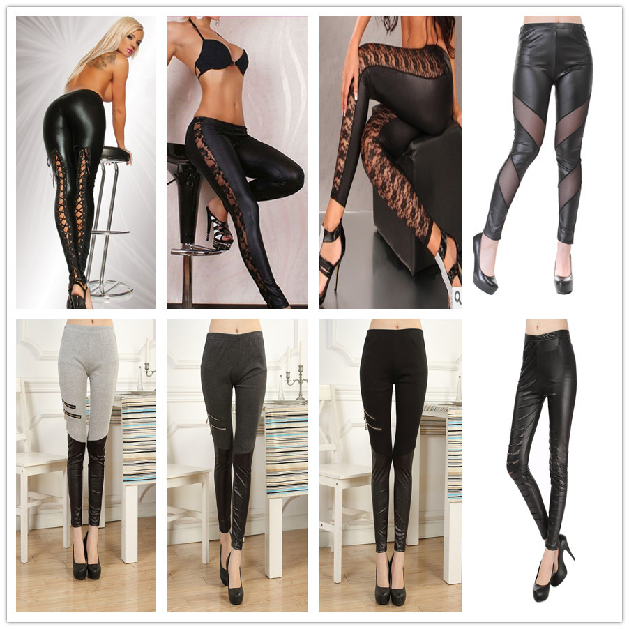 | nameOriginal | Stock handling European and American punk strap leather pants women's imitation leather stitching tight LEGGINGS nightclub dancing LEGGINGS |