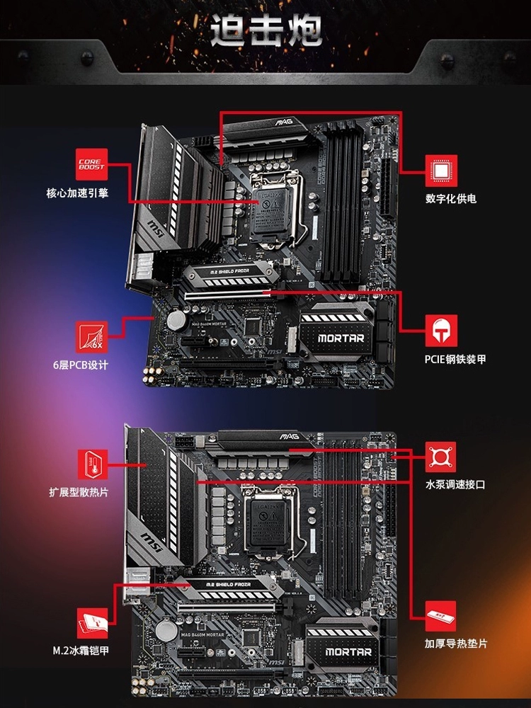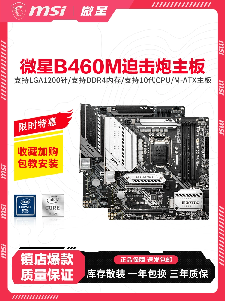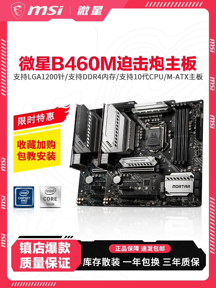 Inventory MSI/MSI B460M Mortar Mortar Mortar Computer Motherboard 10th generation 1200 -pin CPU dual M.2