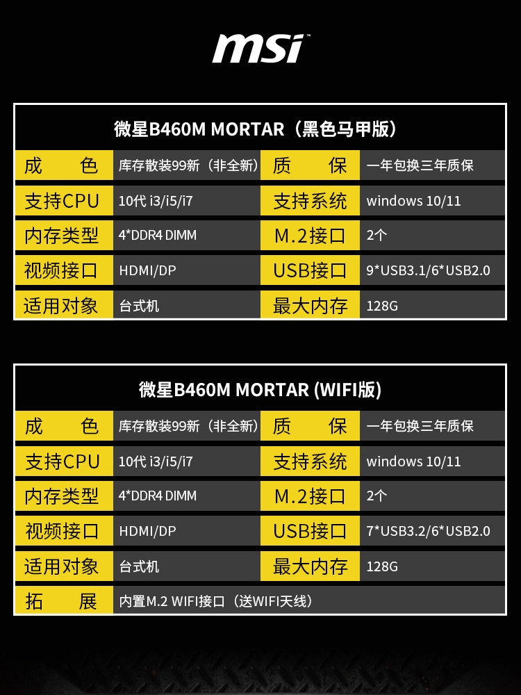 Stock MSI/MSI B460M MORTAR mortar computer motherboard 10th generation 1200-pin CPU dual M.2