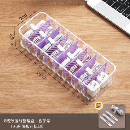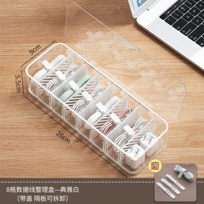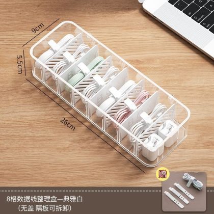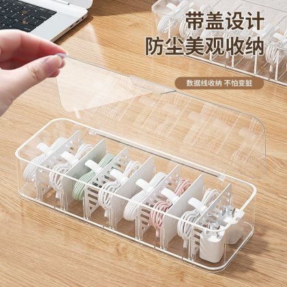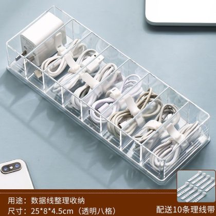 | nameOriginal | Storage box data cable storage mobile phone charging line charger grid finishing desktop transparent winder independent station |