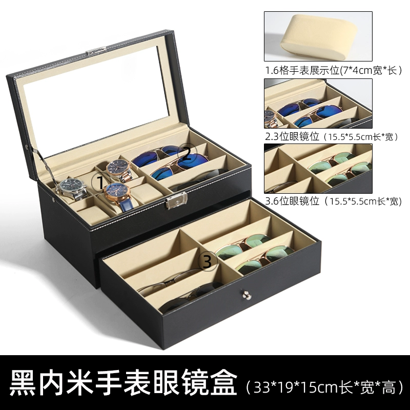 | nameOriginal | Storage box for home use with multiple watches and glasses necklaces |