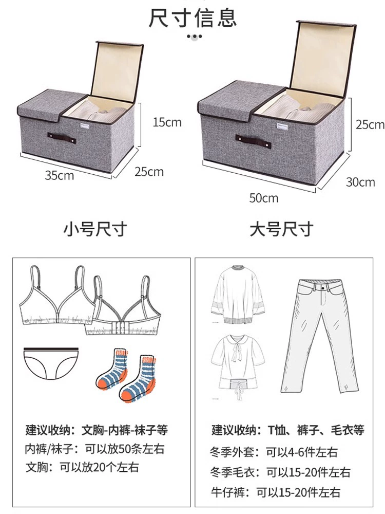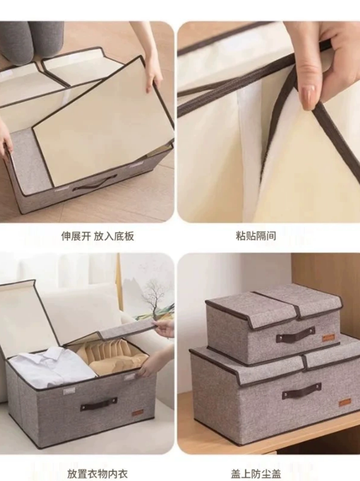 Storage box organizer fabric foldable double cover large storage box underwear box clothes organizer storage box