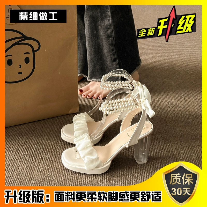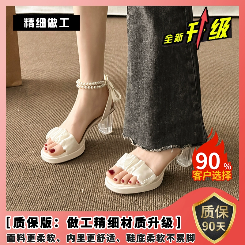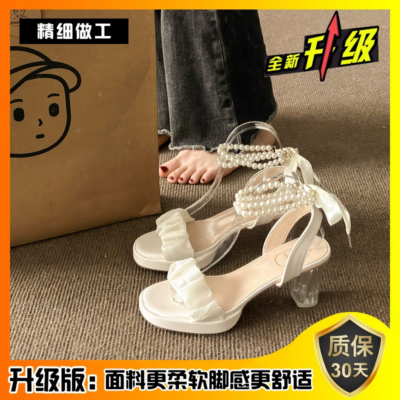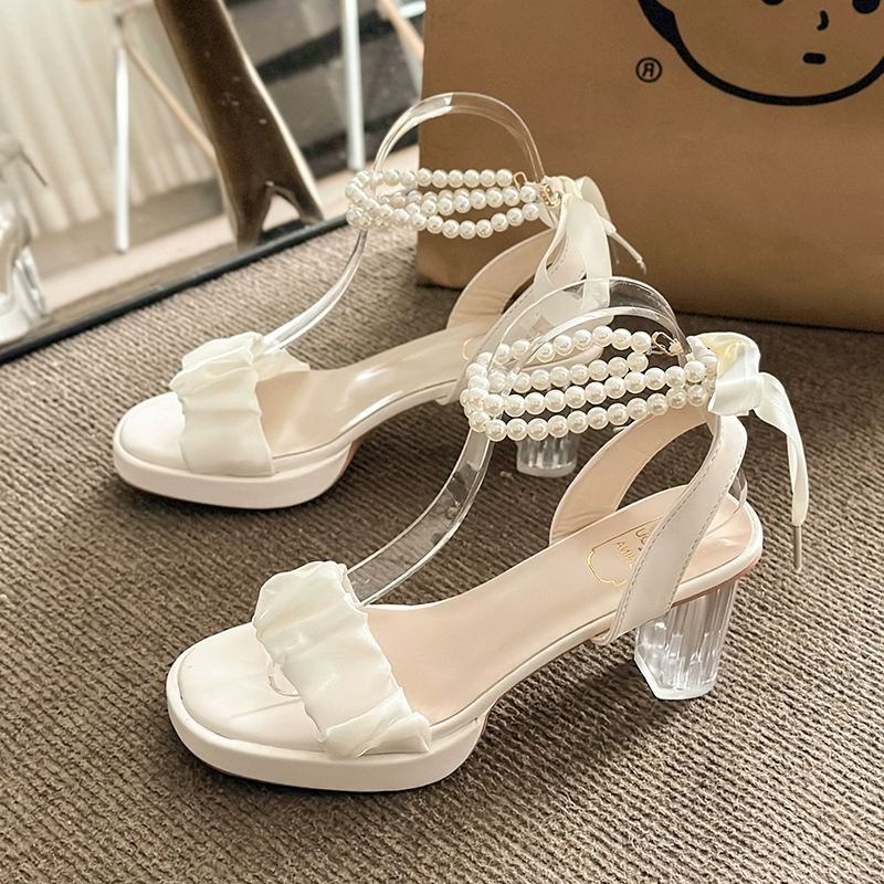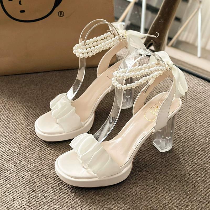 | nameOriginal | Straight crystal block heel open toe pearl fashion sandals |