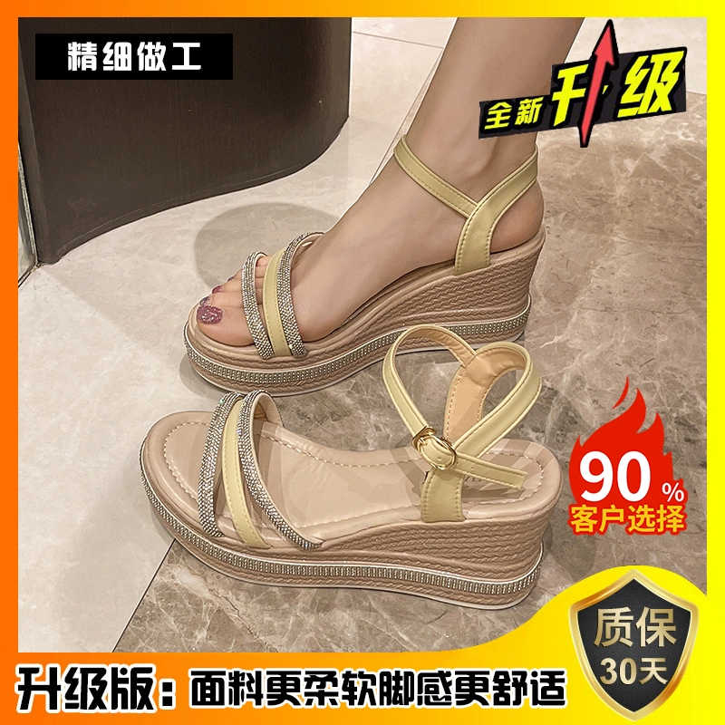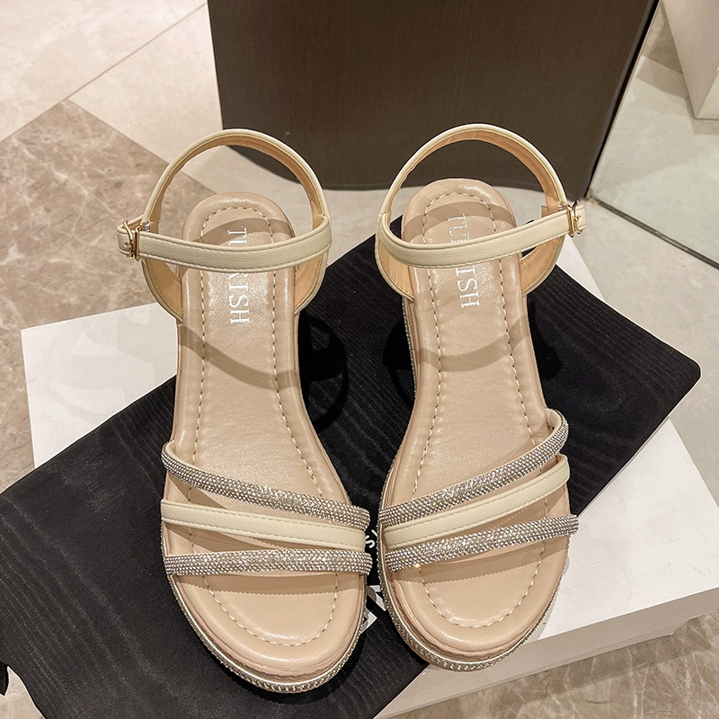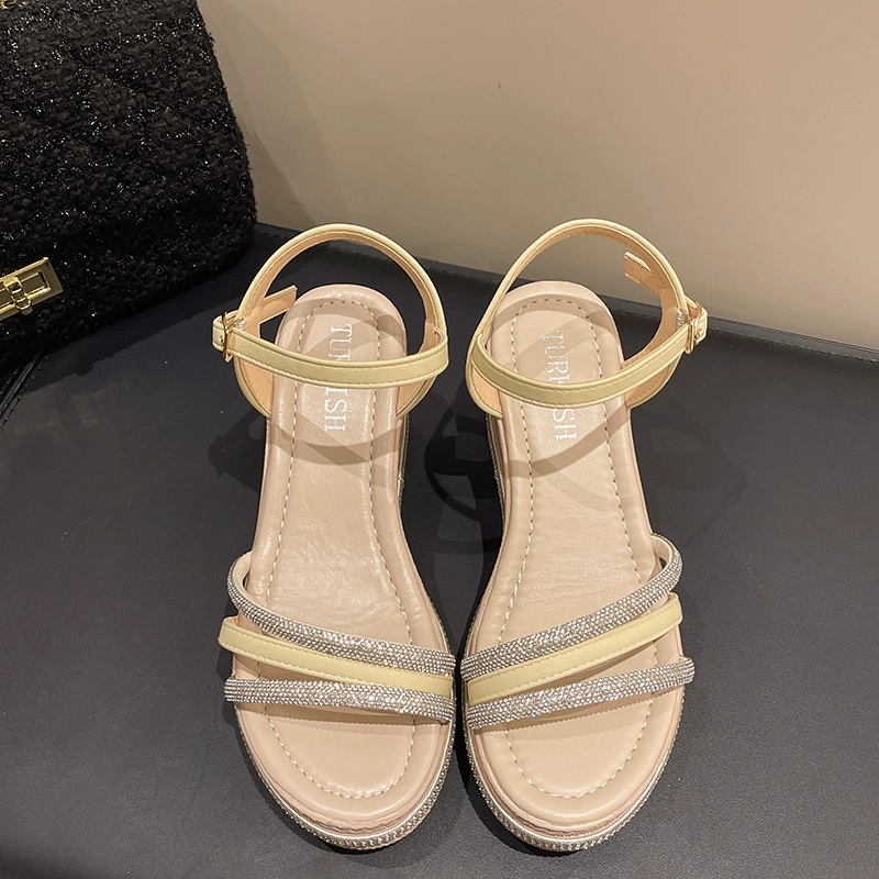 | nameOriginal | Straight-edge wedge heel rhinestone thick-soled beach sandals |