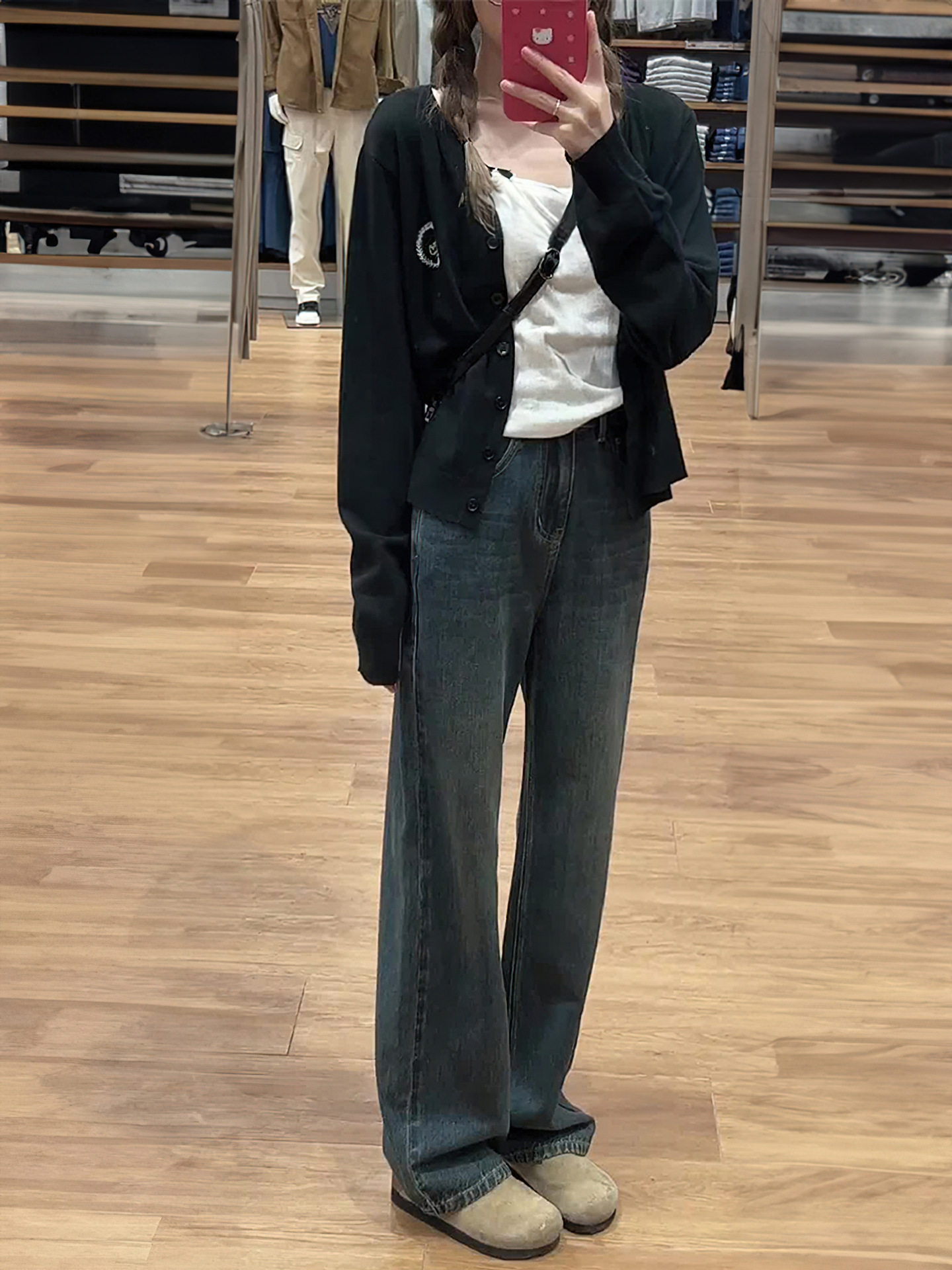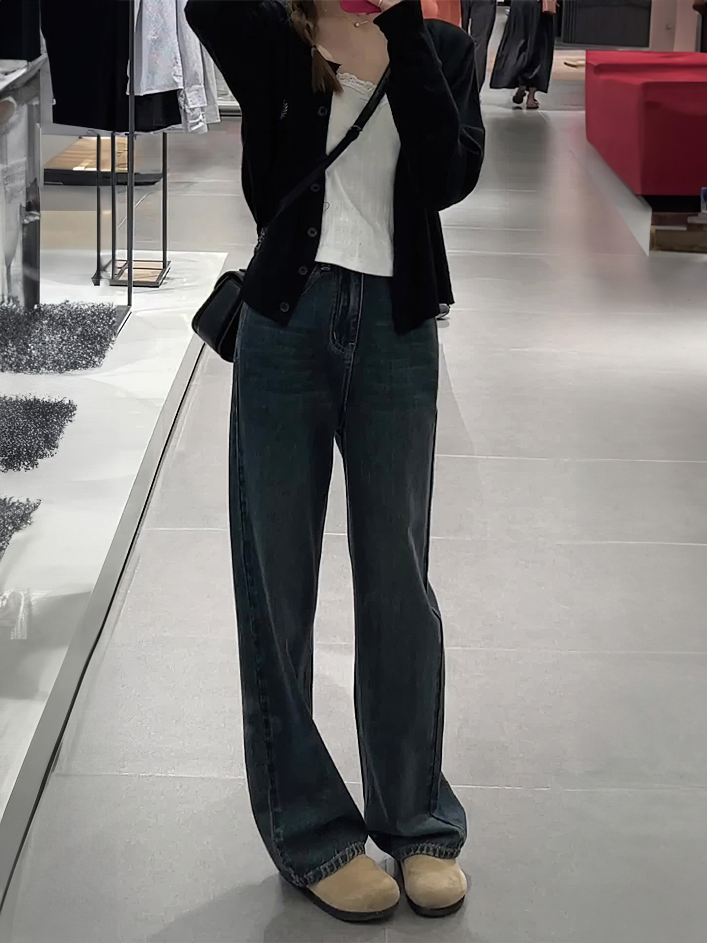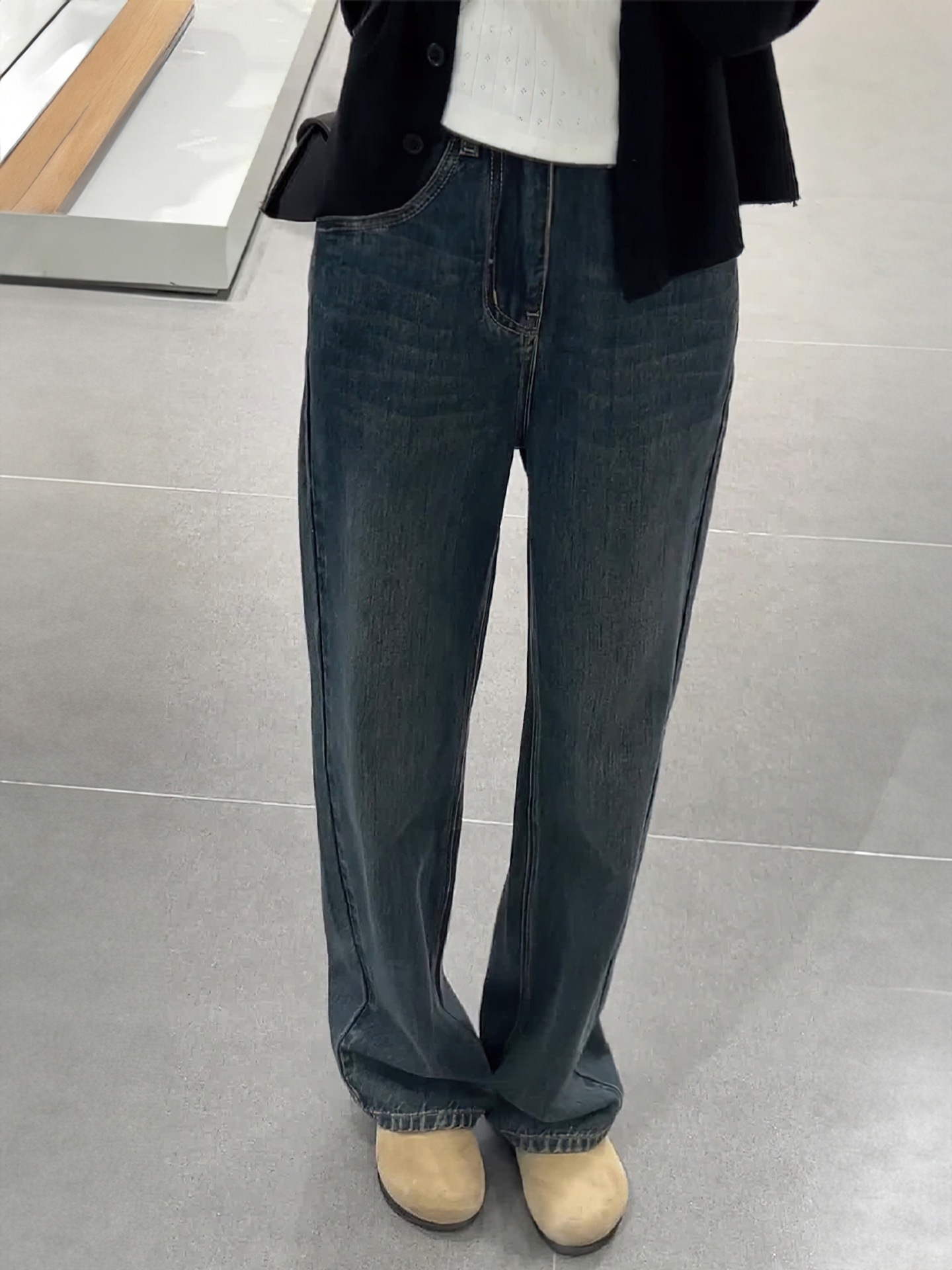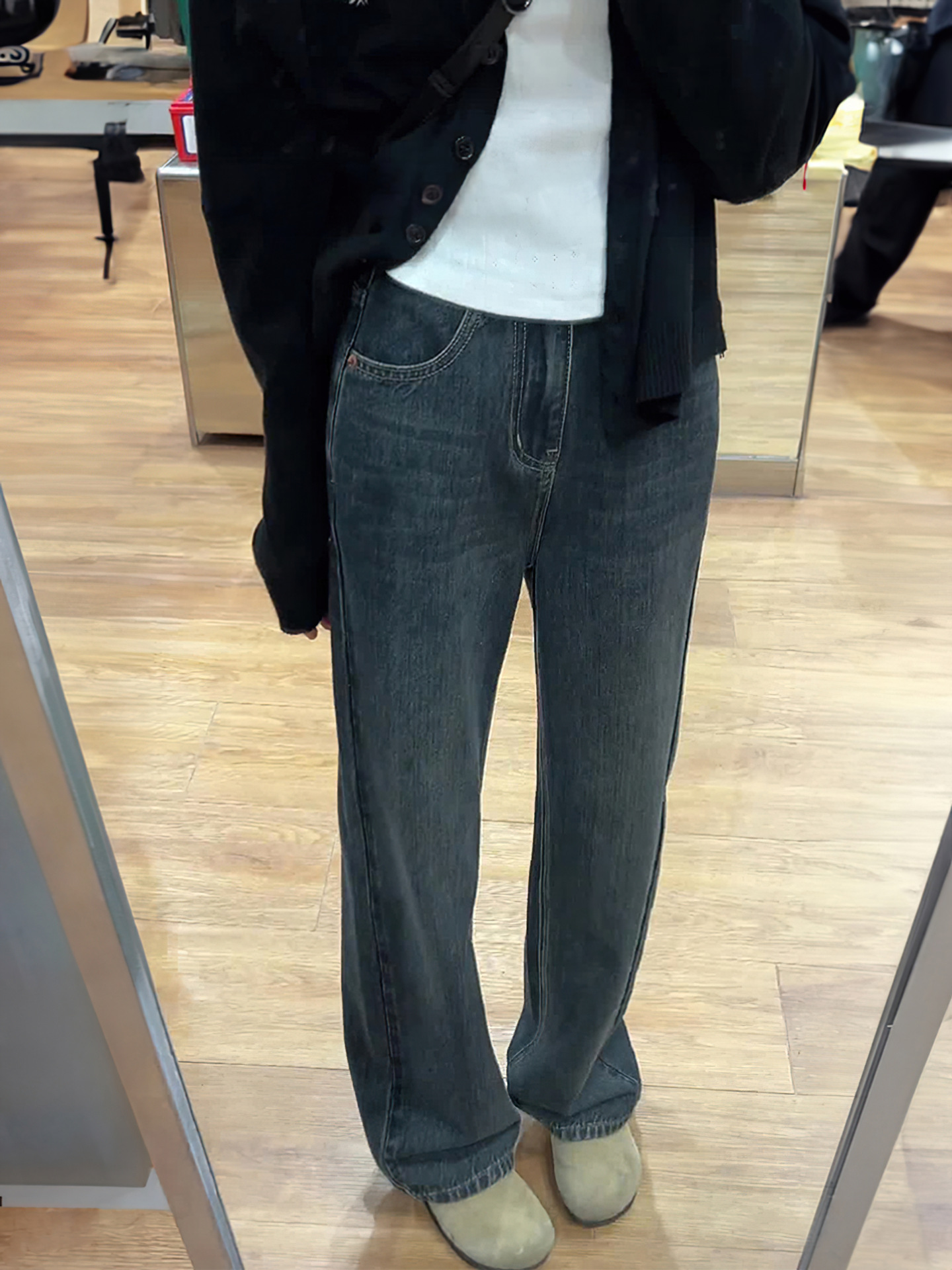 | nameOriginal | Straight jeans women's autumn and winter fleece-lined fat sister mm high waist slimming wide leg trousers pear-shaped figure pants |