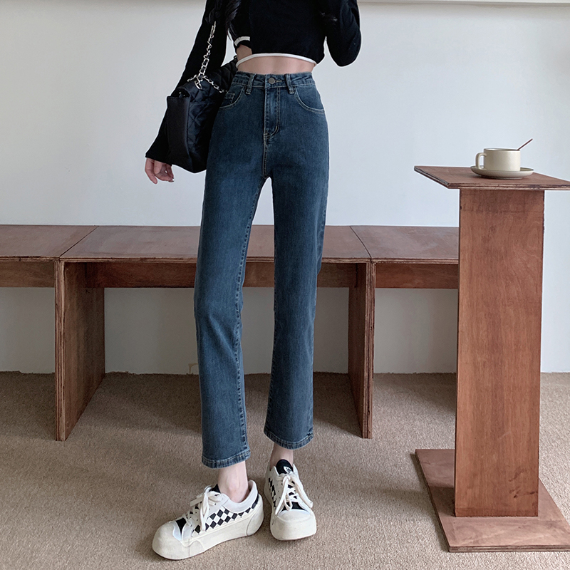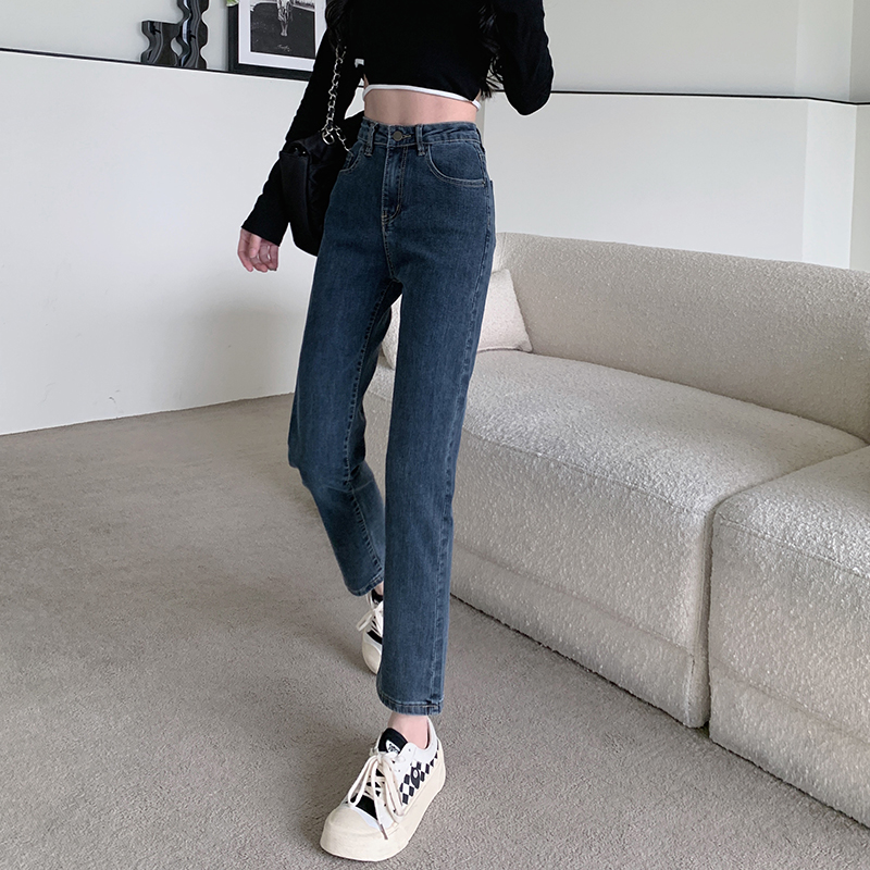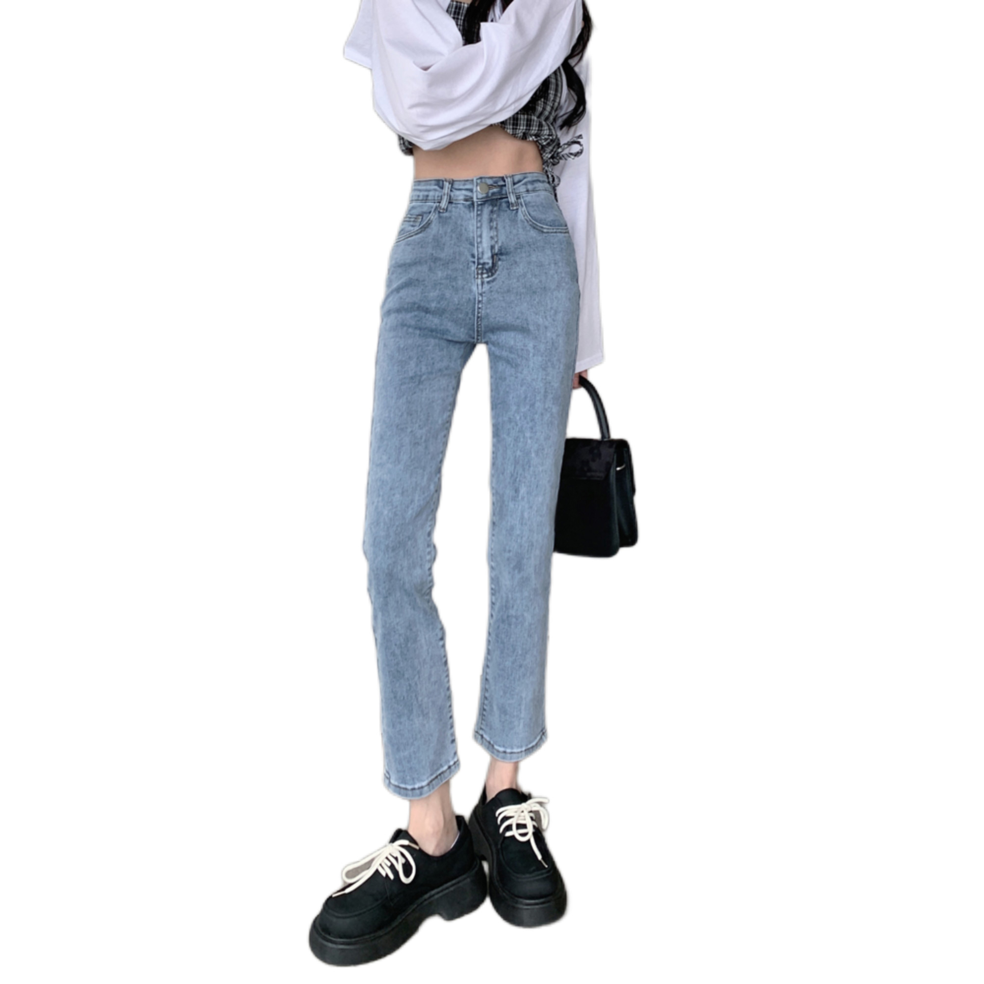Straight-Leg High-Waist Jeans Women's Stretch 2024 Spring Korean-style Wear Straight All-match Cropped Cigarette Trousers