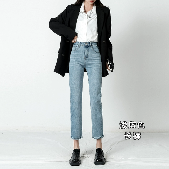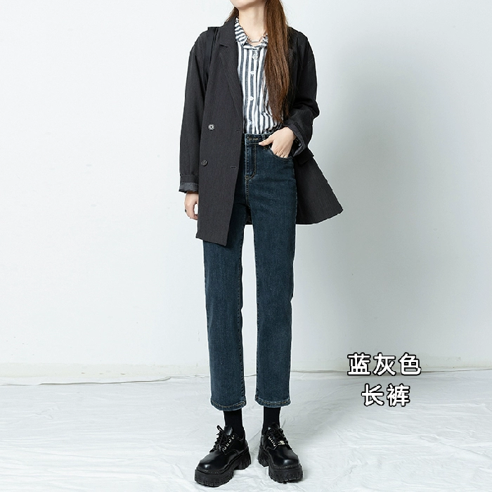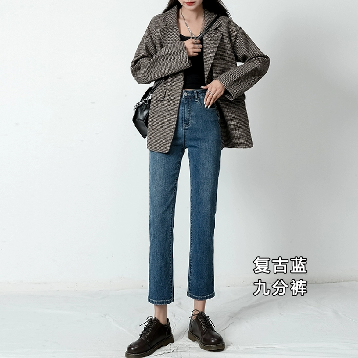 | nameOriginal | Straight-leg jeans for women in autumn and winter, high-waisted slim dad nine-point pants, niche retro blue petite cigarette pants |