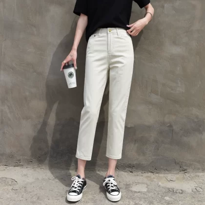 Straight-leg jeans for women, nine-point pants for spring, autumn and summer, thin, slim, high-waisted casual cigarette pants for small people, eight-point pants