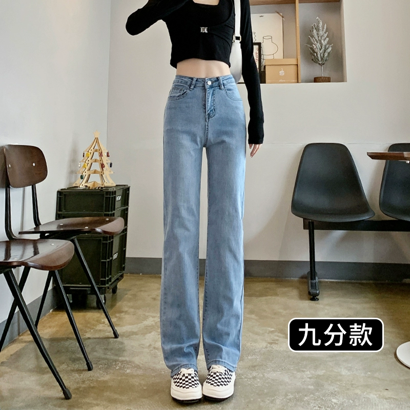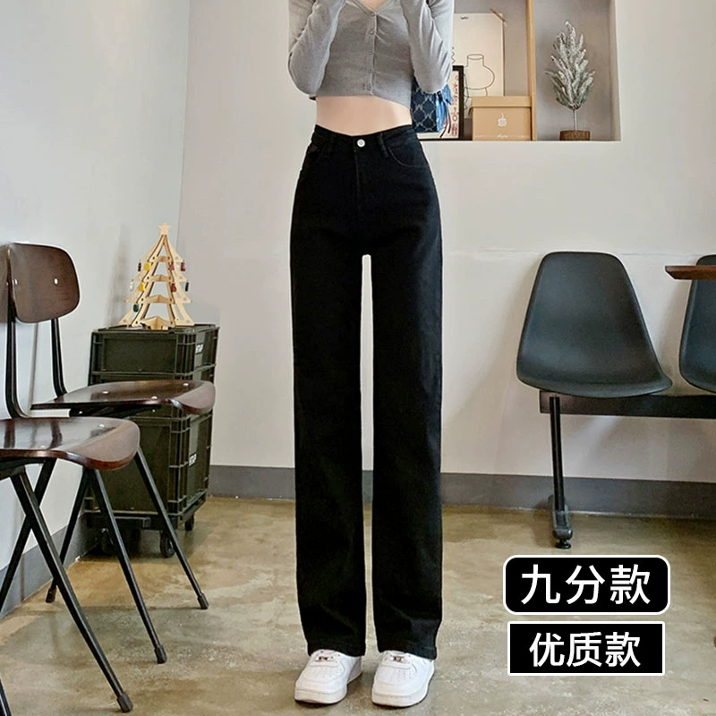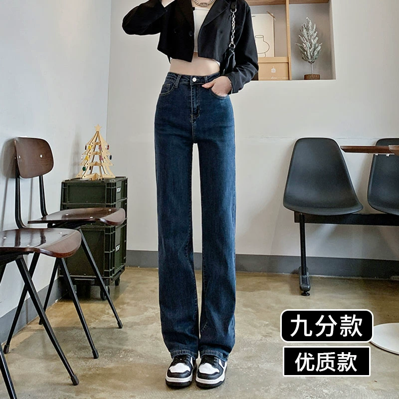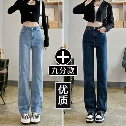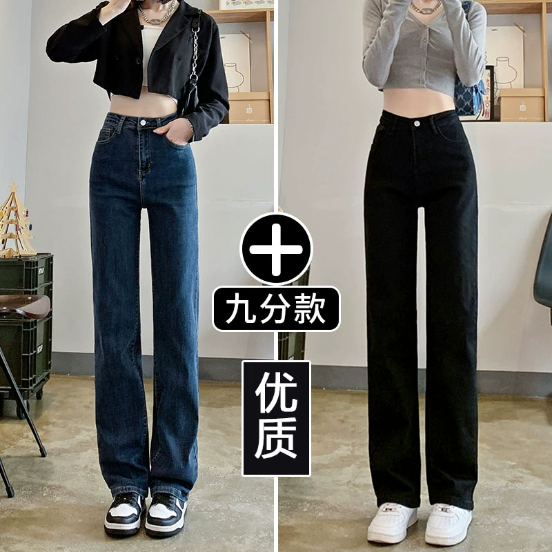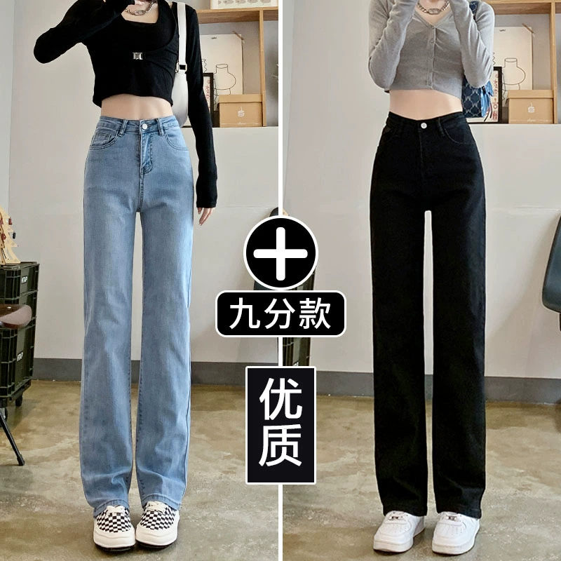 Straight-leg jeans for women spring and autumn 2024 new high-waisted loose nine-point drape wide-leg pipe mopping pants