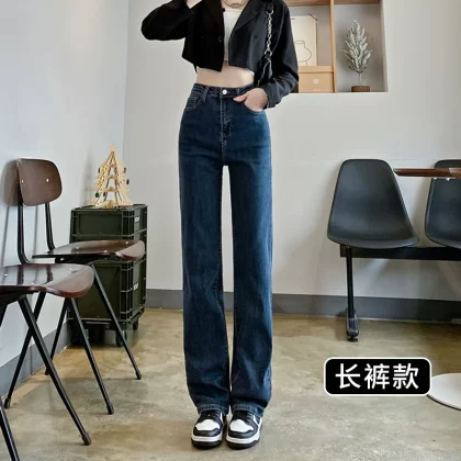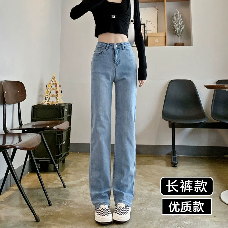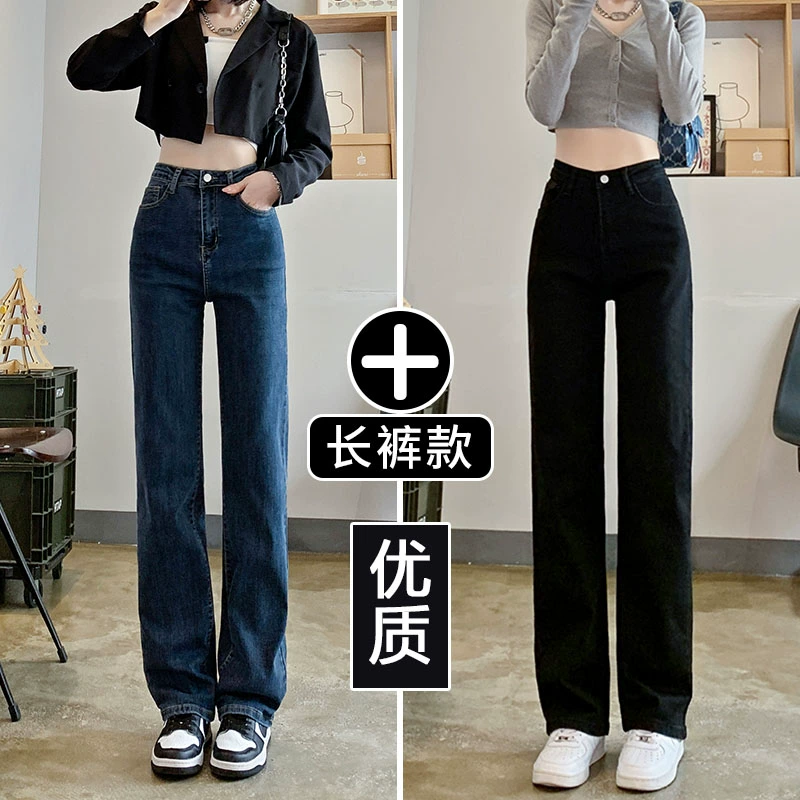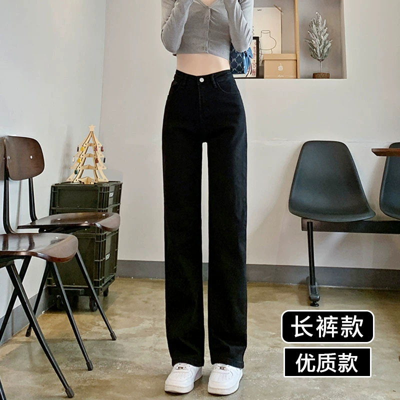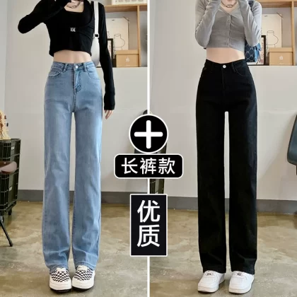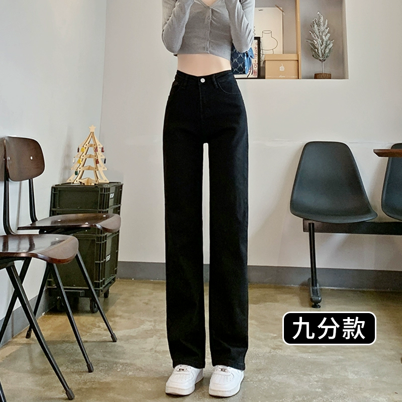 Straight-leg jeans for women spring and autumn 2024 new high-waisted loose nine-point drape wide-leg pipe mopping pants