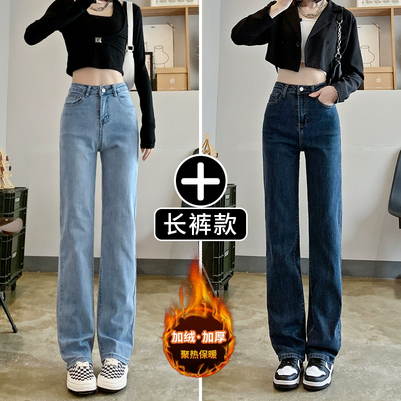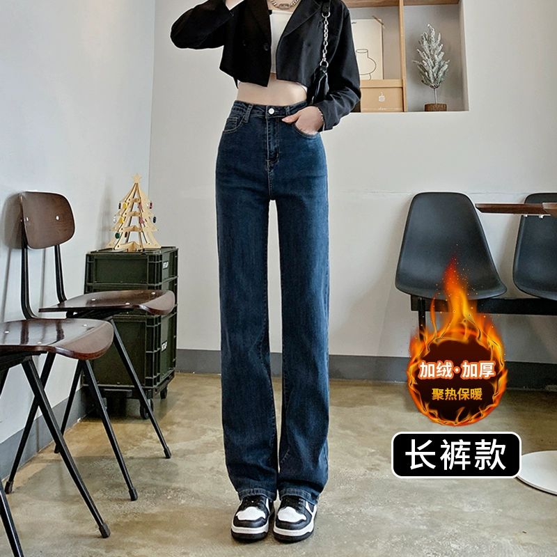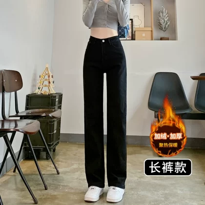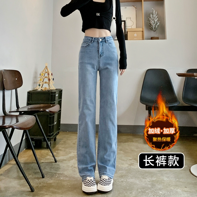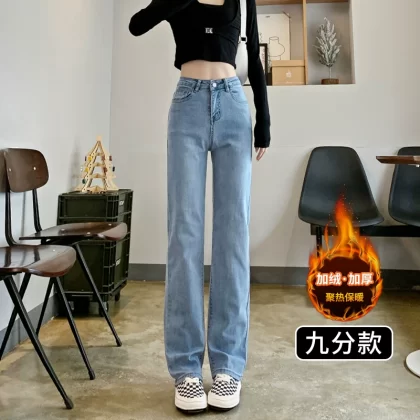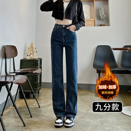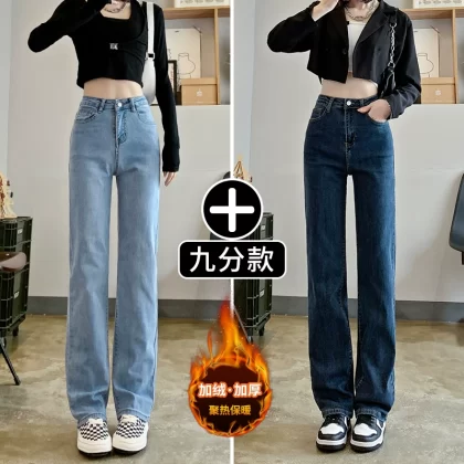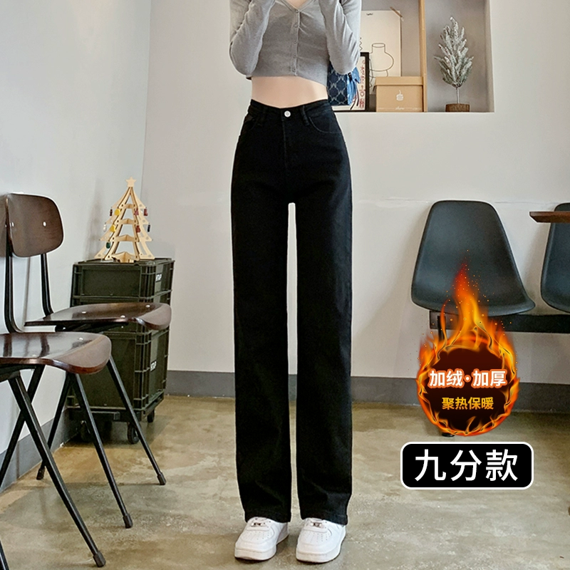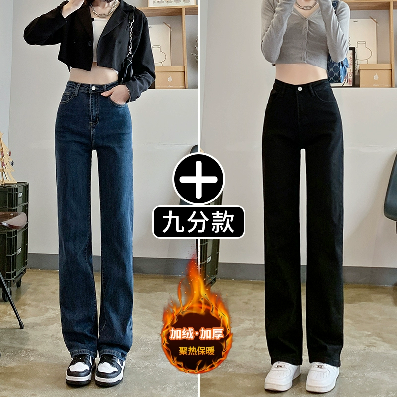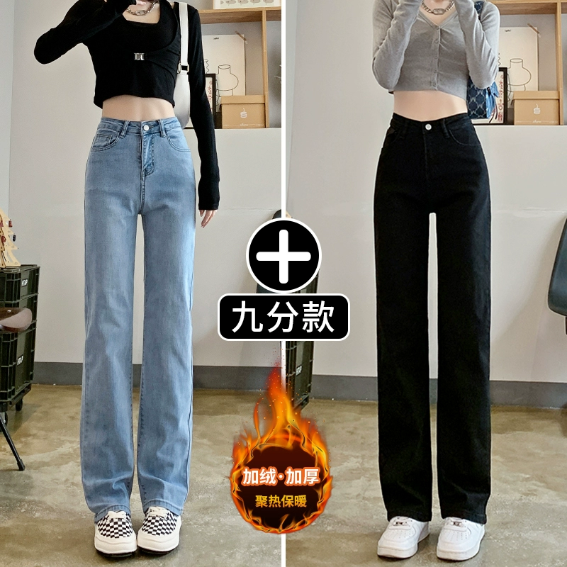 Add velvet straight jeans Women’s spring and autumn 2024 new high -waisted loose nine -point vertical, wide -leg mop pants winter