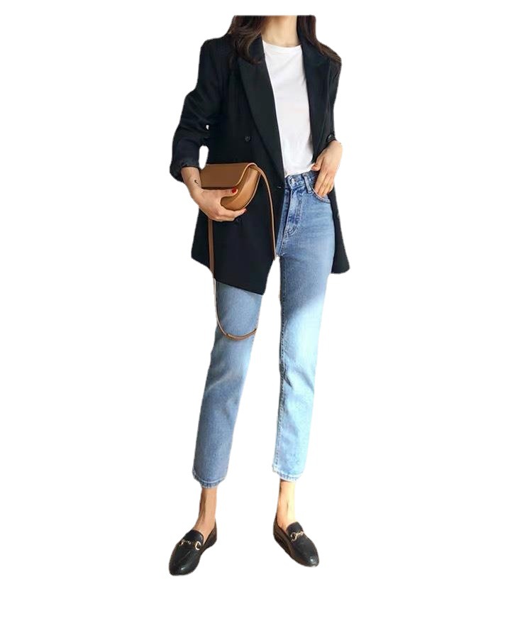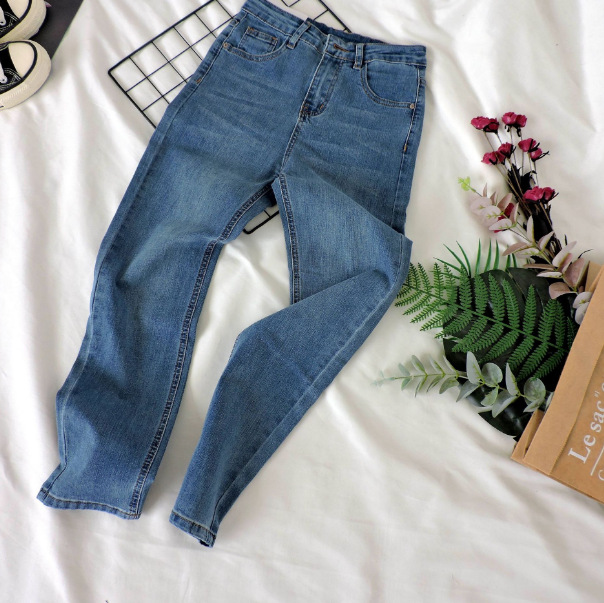 Straight Leg Jeans Women’s 2024 Spring New Arrival Korean-style All-match High Waist Loose Slimming Eight-point Nine-point Pipe Pants