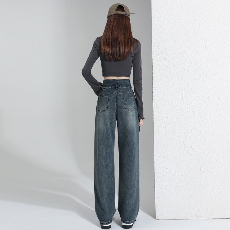 | nameOriginal | Straight Leg Jeans Women's 2024 Summer Thin Retro High Waist Slimming Loose Dosing Pants for Small Wide Legs |