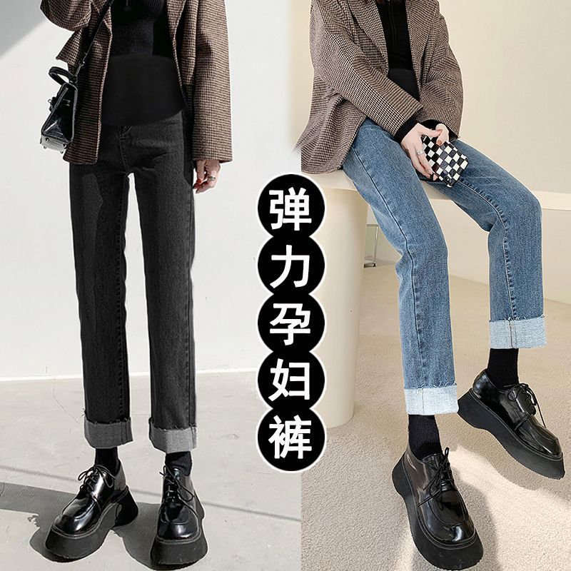 | nameOriginal | Straight pants pregnant women's pants jeans spring and autumn thin outer wear belly support pants cropped small spring autumn and winter |
