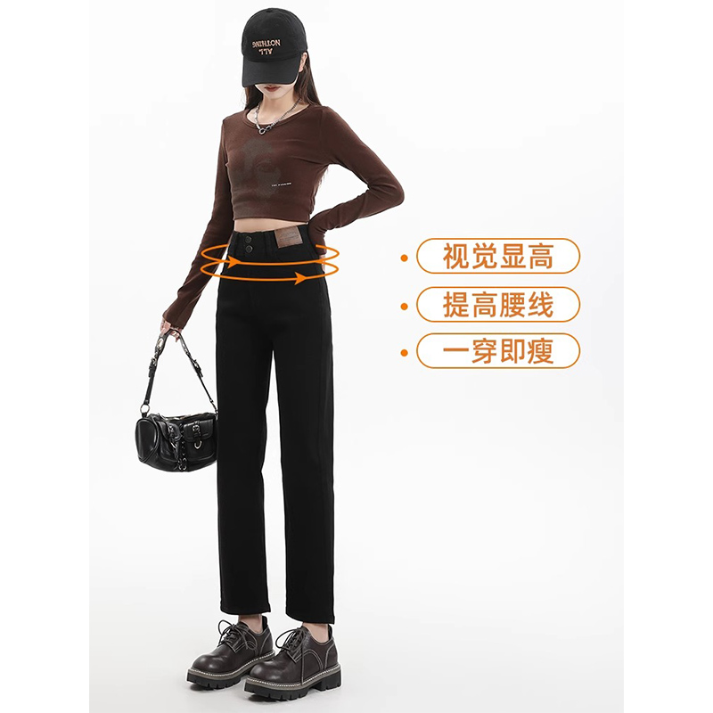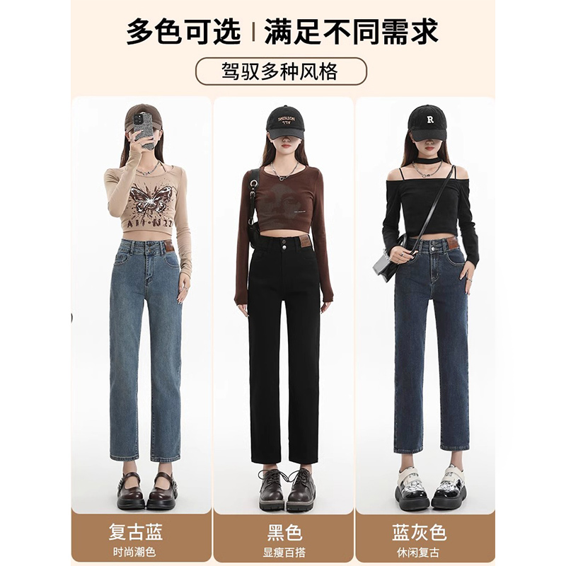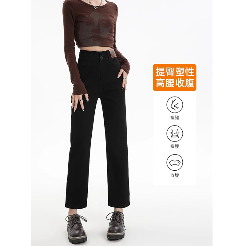 | nameOriginal | Straight Pipe Pants Women's 2024 Summer Thin Slimming Small Nine-point High Waist Black Jeans Eight-point |
