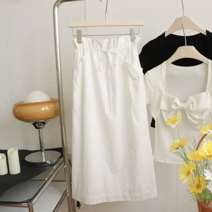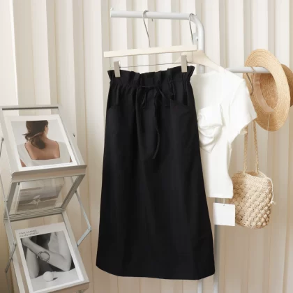 | nameOriginal | Straight skirt with lace-up adjustment for high waist overalls |