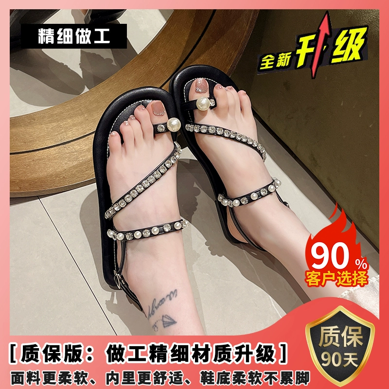 | nameOriginal | Straight thong flat Roman sandals with pearls and rhinestones |
