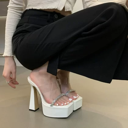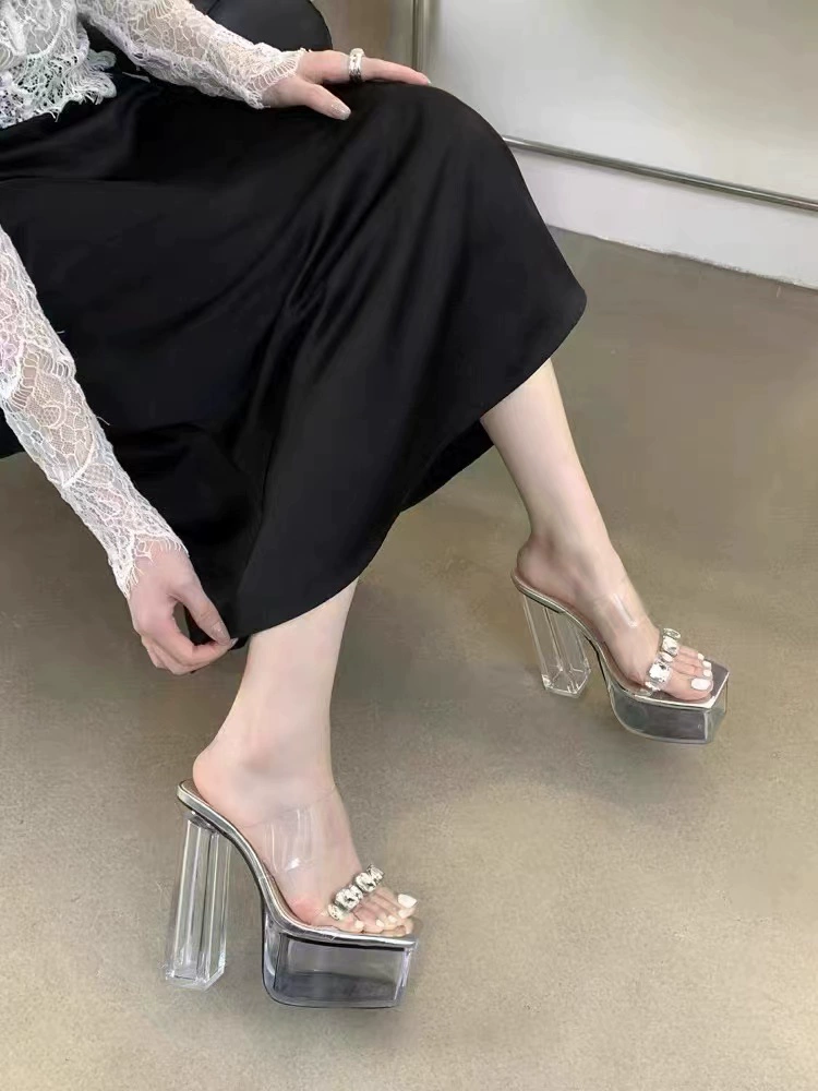 One-length strap 15cm transparent summer waterproof platform high heels