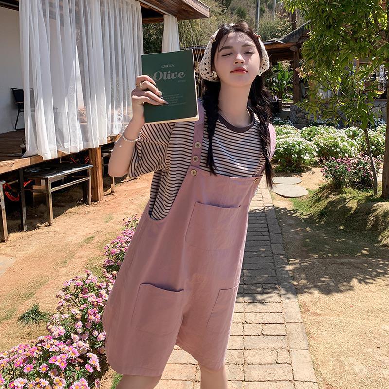 Strap Shorts suit Women's Summer 2024 New Korean Style Casual Age-reducing College Style Two-piece Set for Small Men