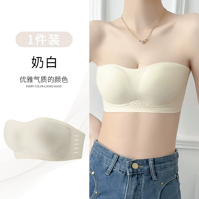 Strapless tube top bra for women, anti-slip, push-up, small breasts, summer, seamless, invisible, beautiful back-wrap bra, does not slide down