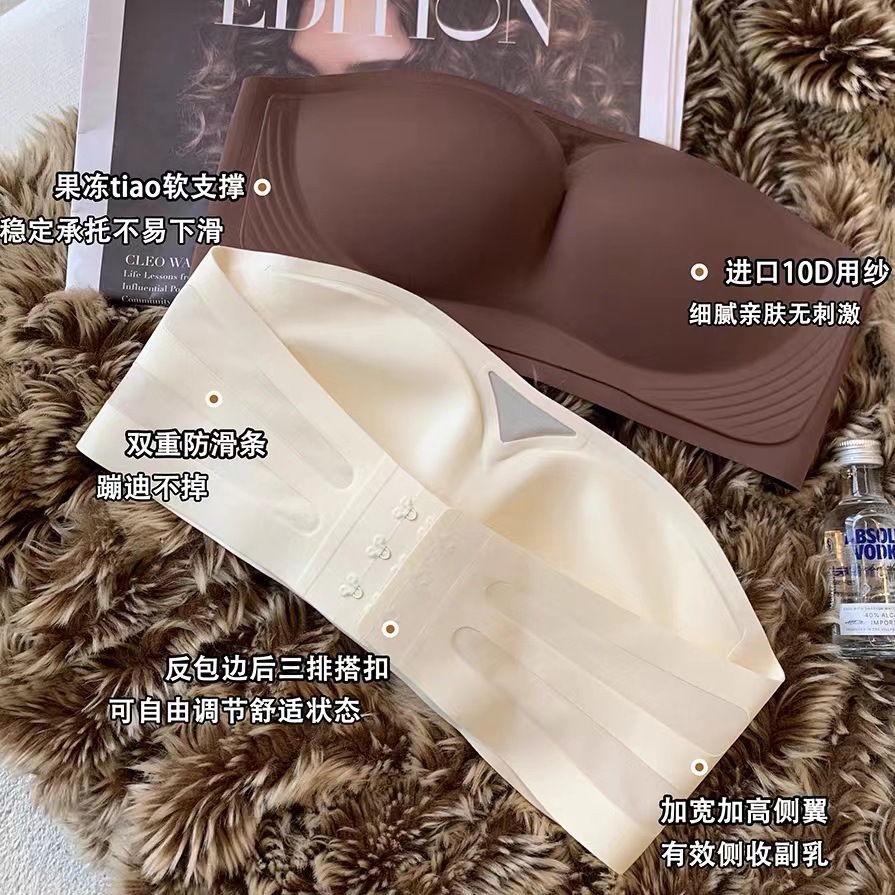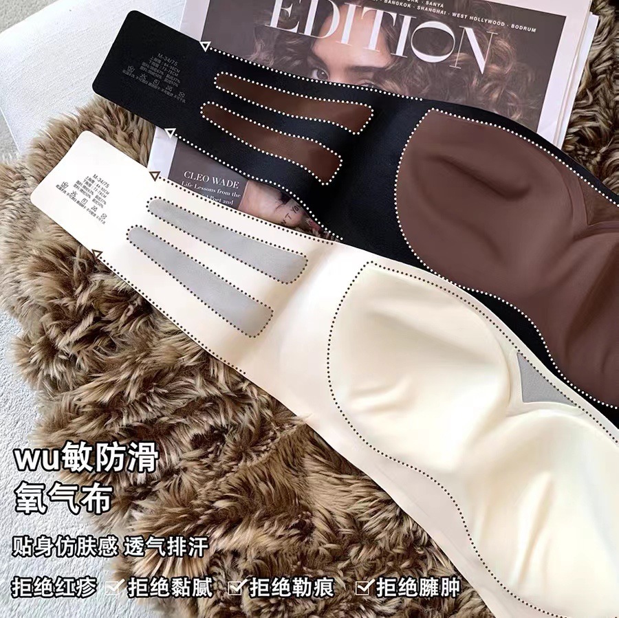 Strapless Underwear Women’s Non-slip Chest Wrapping Anti-light Gather-up Small Chest Traceless Strapless Breast-free Steel Ring-free Invisible Back Bra