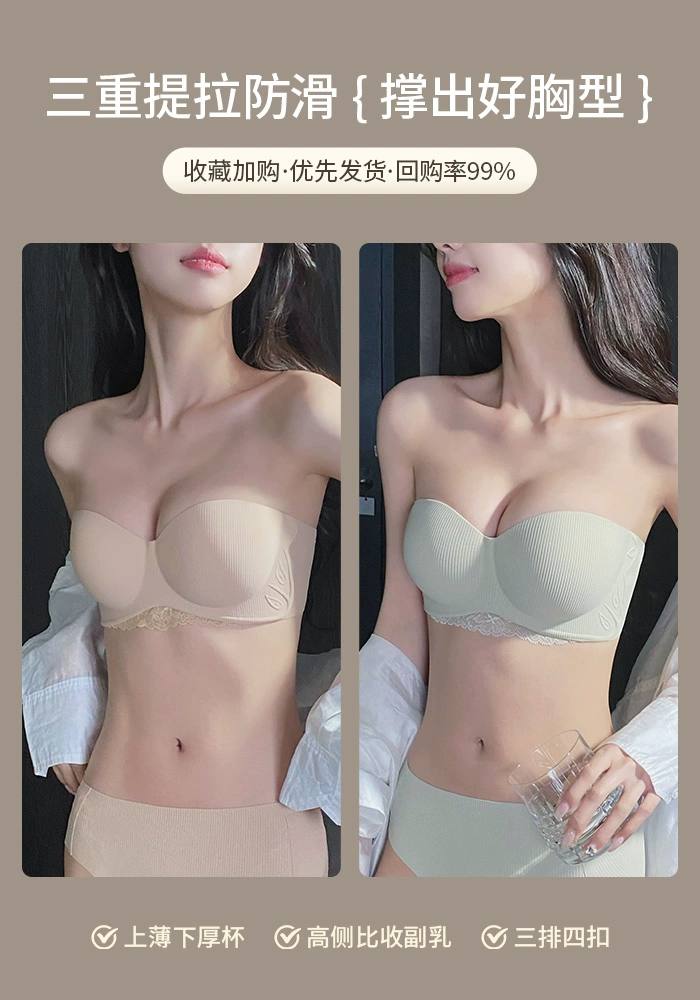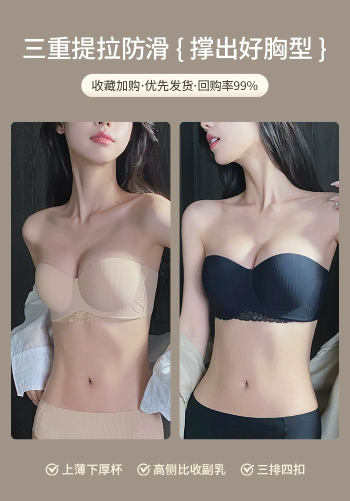 | nameOriginal | Strapless underwear women's non-slip push-up bra 2024 new hot style no steel rims small breast push-up adjustable bra |