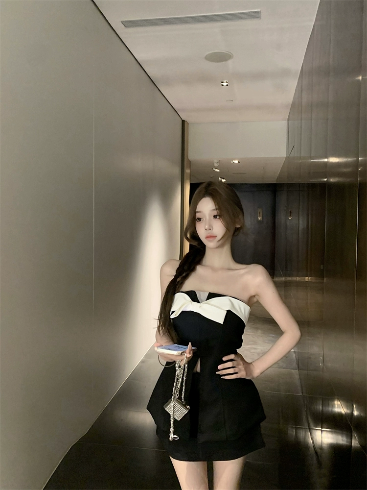 | nameOriginal | Strapless Women's Summer Slim Pure Desire Contrast Color Bow |